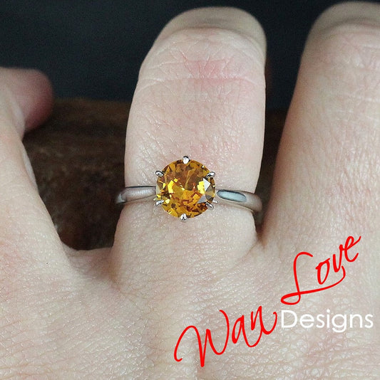 Anello di fidanzamento con zaffiro Padparadscha Solitario rotondo a 6 punte, 2 ct, 8 mm, argento rodiato, fiore di tulipano, regalo di anniversario, traliccio-pronto per la spedizione