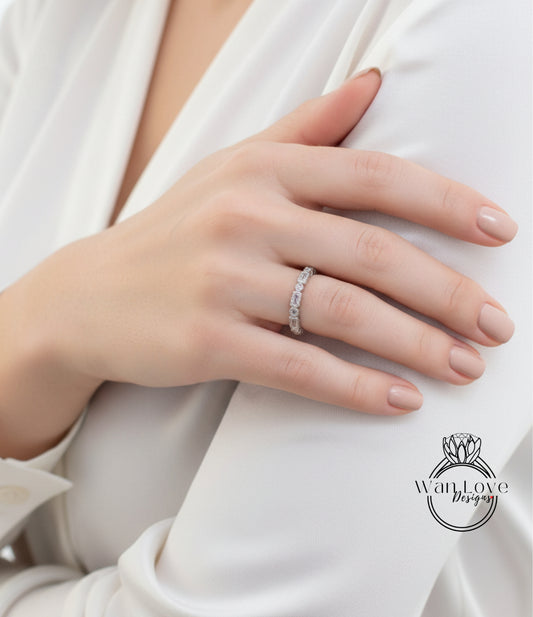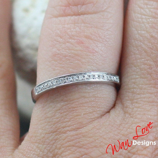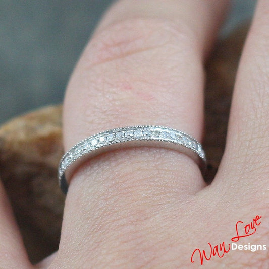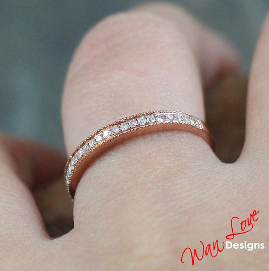 Campione di vendita Pronto per la spedizione-Diamante Milgrain channel Fede nuziale-mezzo anello Eternity Stack-Argento 925 rodiato Giallo oro rosa-Regalo di anniversario