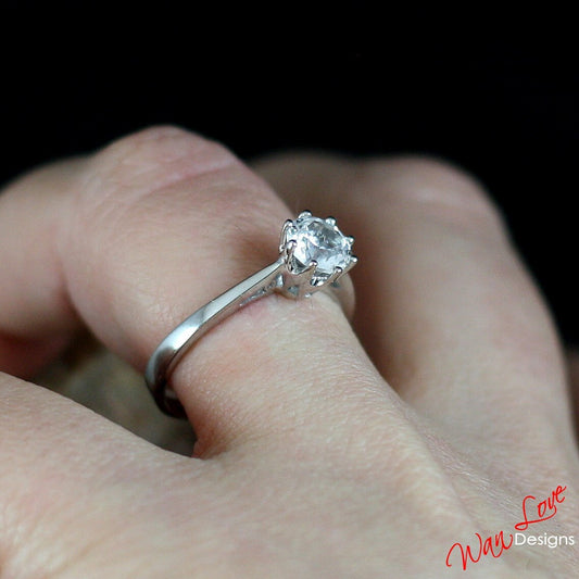 Vendita campione Pronto per la spedizione: Anello di fidanzamento con zaffiro bianco, Solitario, Rotondo cattedrale a 8 griffe, 1 ct, 6 mm, Argento rodiato, Regalo di anniversario di matrimonio