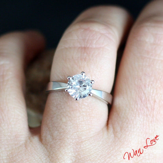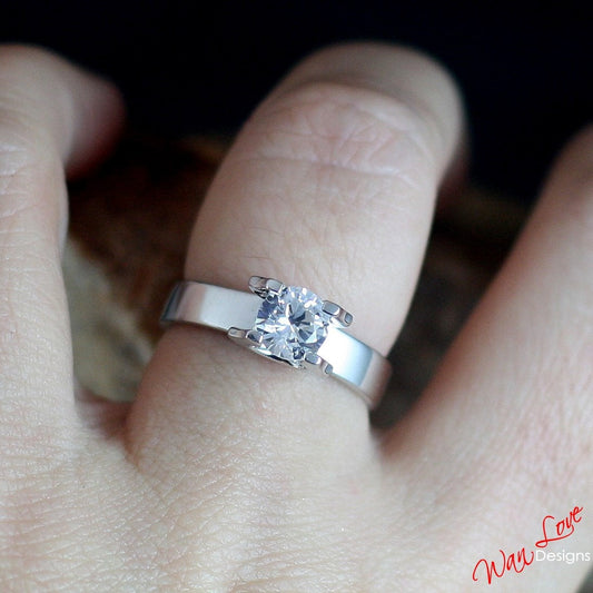 Vendita campione Pronto per la spedizione: Solitario in zaffiro bianco con tensione moderna, design rotondo da 1 ct, 6 mm, anello di fidanzamento, matrimonio, regalo di anniversario