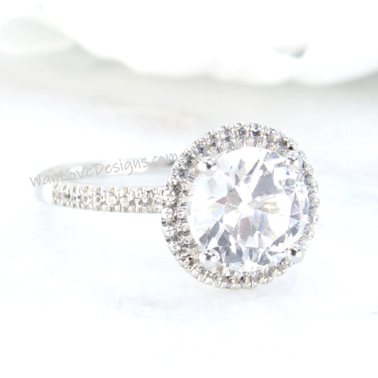 Anello di fidanzamento Halo rotondo con zaffiro bianco, 2 ct, 8 mm, argento 925 con rodio, matrimonio, regalo di anniversario, cestino, 2 carati, pronto per la spedizione