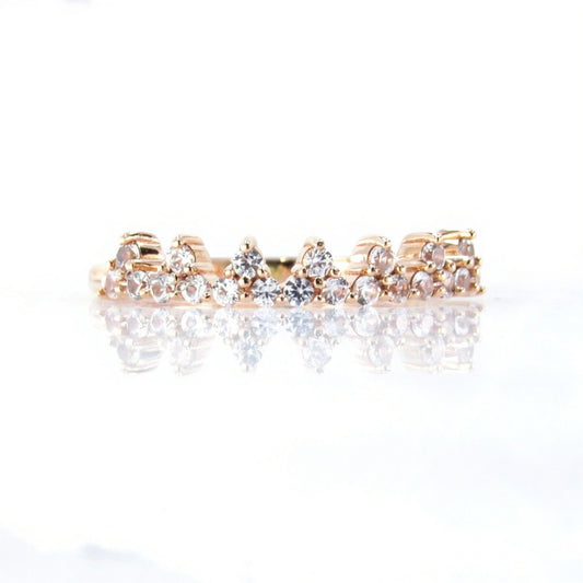Fede nuziale con diadema con corona di zaffiro bianco, fascia abbinata, anello di fidanzamento, anello in oro rosa-nave pronta per il regalo di anniversario personalizzato