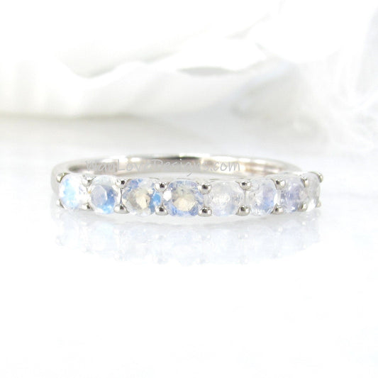 Fede nuziale in pietra di luna, anello in pietra lunare con 8 gemme, anello rotondo da 3 mm, anello nuziale bohémien, pronto per la spedizione