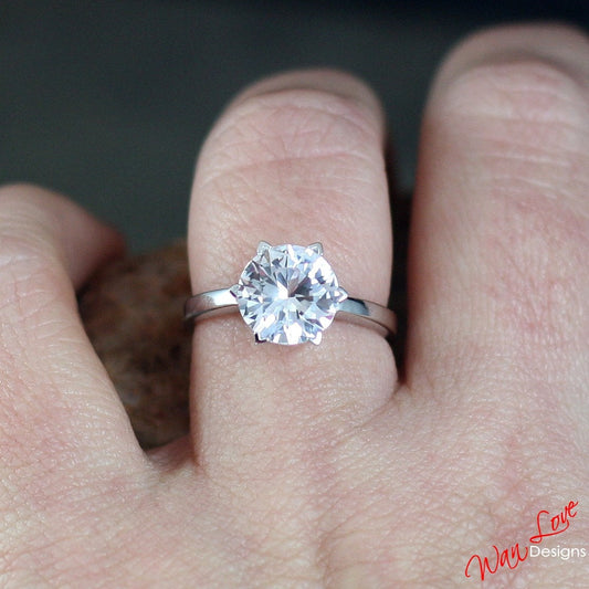 Anello di fidanzamento con tulipano con zaffiro bianco e diamanti Taglio rotondo 1ct 6mm Anello nuziale nuziale Anello anniversario Anello con punta a coppa fiore, Pronto per la spedizione