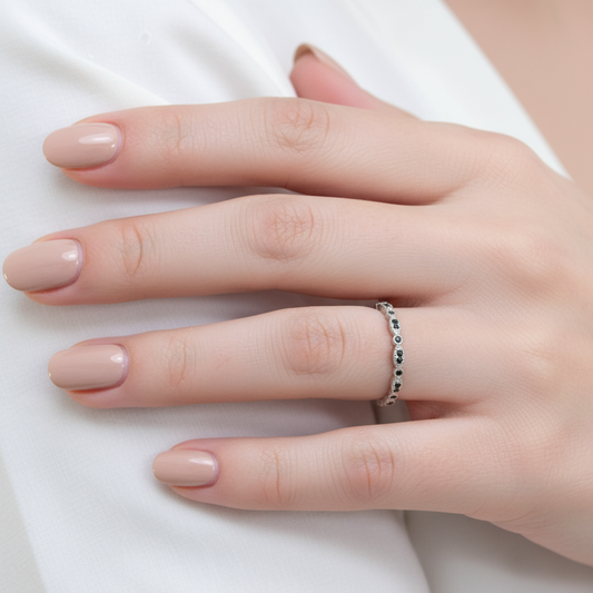Vendita campione Pronto per la spedizione-Fede nuziale impilabile Half Eternity con spinello nero sottile e delicato, Anello di fidanzamento, Regalo di anniversario-1,8 mm