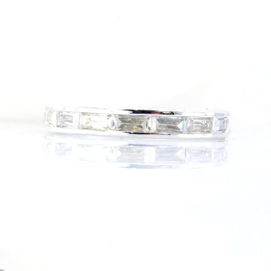 Campione di vendita Pronto per la spedizione-Fede nuziale Half Eternity sagomata in zaffiro bianco-impilabile da 0,22 ct in argento 925 rodiato-misura 6,5-regalo per l'anniversario