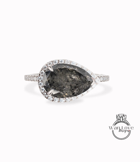 Anello di fidanzamento Salt & Pepper con diamanti East West Halo Pear Galaxy, personalizzato in oro bianco giallo rosa 18kt 14kt-platino