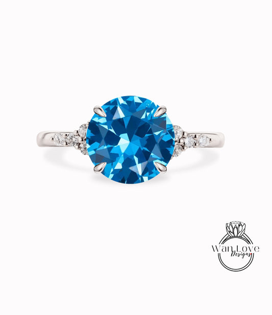 Vintage Ocean Blue Spinel Diamond Round Cluster anello art deco sottile delicato 3 pietre preziose Anello di fidanzamento Anello nuziale Anello nuziale Promessa di anniversario