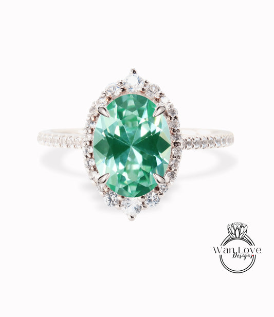 Anello di fidanzamento vintage ovale taglio Teal Spinel anello oro rosa Anello aureola di diamanti Matrimonio Art deco Anello unico Anello anniversario anello smeraldo laboratorio