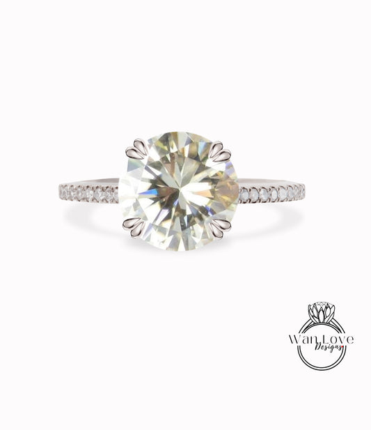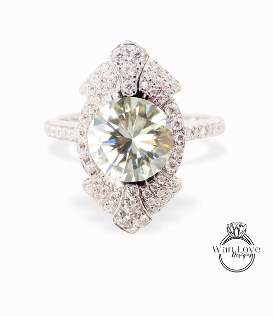 Anello di fidanzamento con moissanite e diamante smerlato, anello rotondo Halo Moissanite, anello nuziale Milgrain Vintage Diamond Moissanite, personalizzato