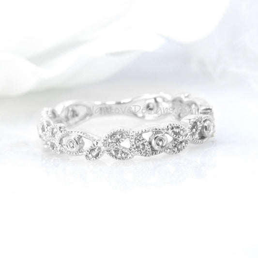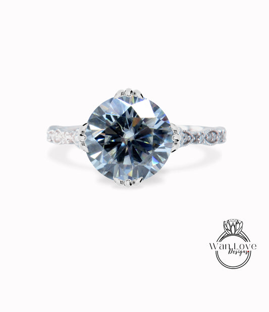 Anello con castone Milgrain Moissanite e diamante taglio rotondo Anello di fidanzamento Anello con castone rotondo Art Deco Anello da sposa promessa anello regalo di anniversario