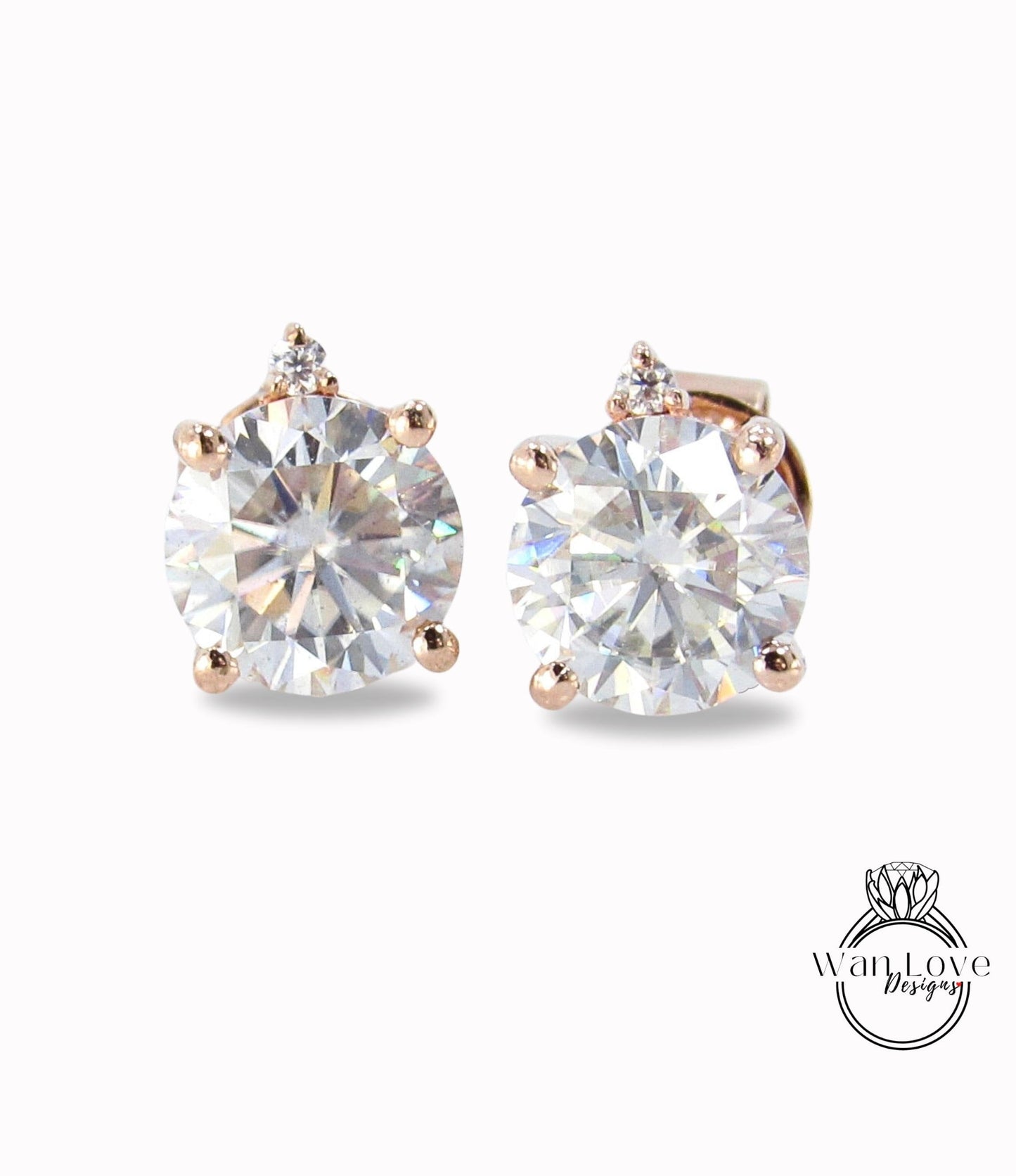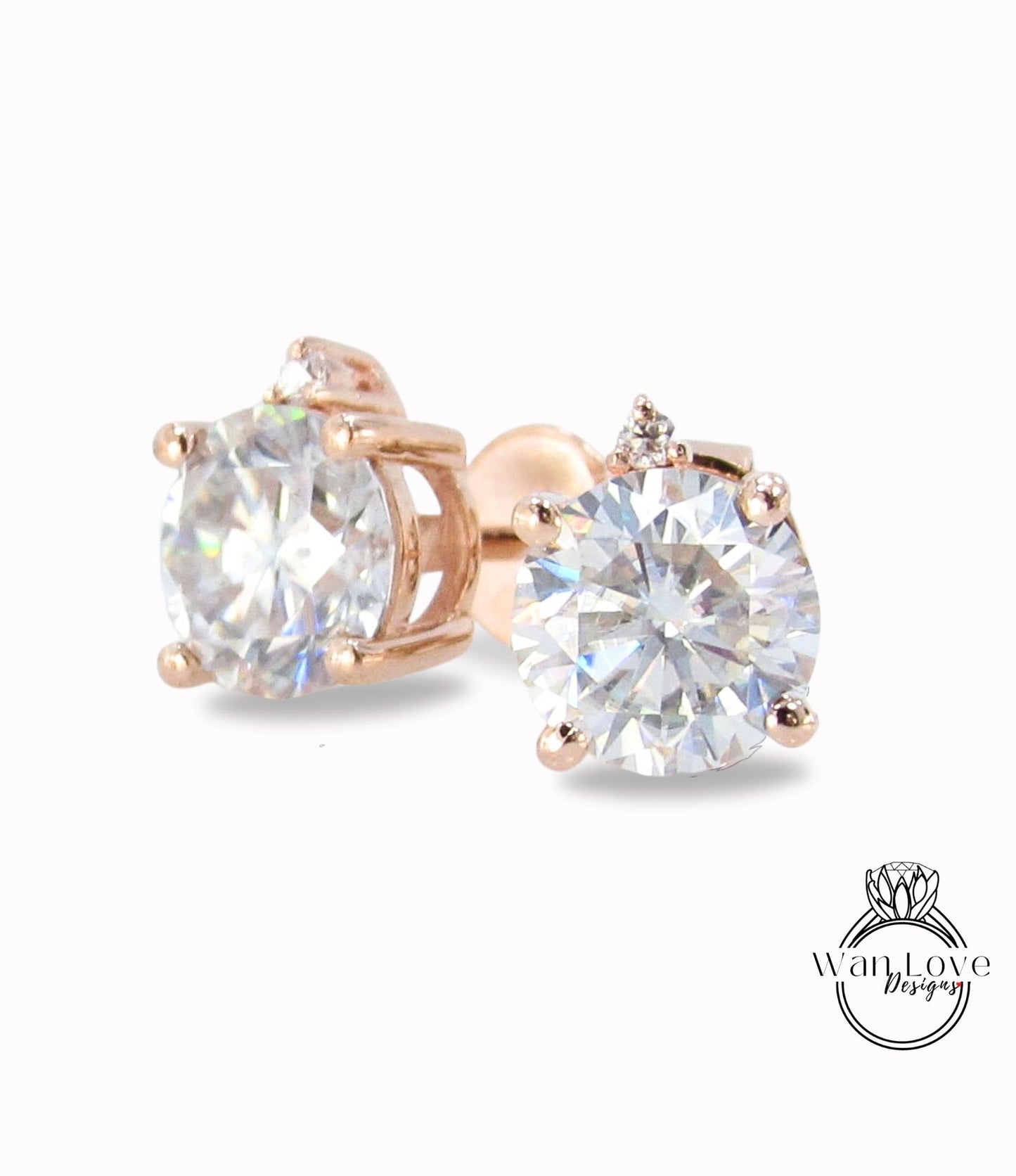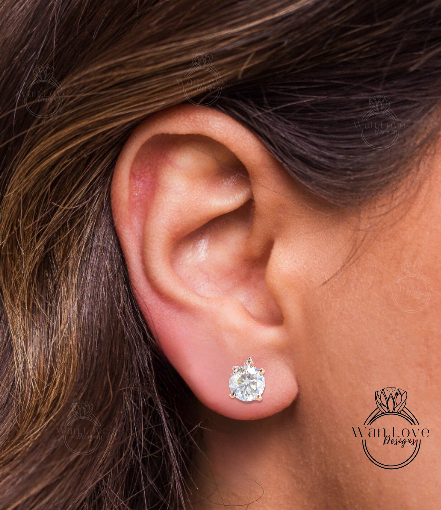 Orecchini classici con diamanti da 2 ct • Orecchini rotondi con solitario Moissanite in oro 14k 18k • Orecchini minimalisti con pietra portafortuna • Regalo per lei