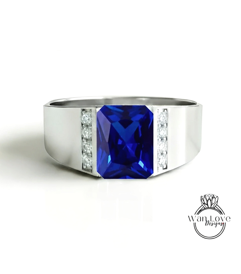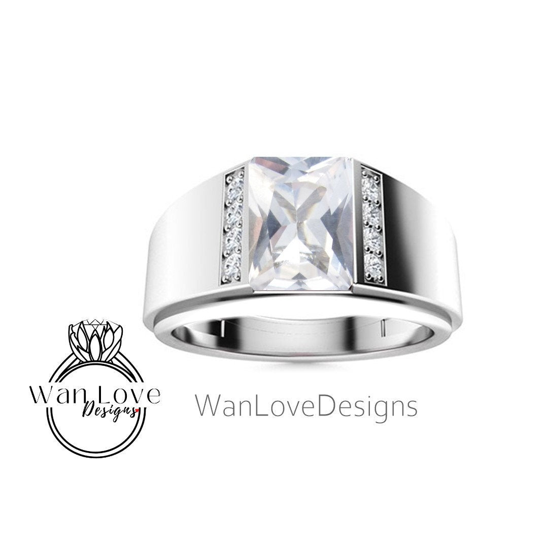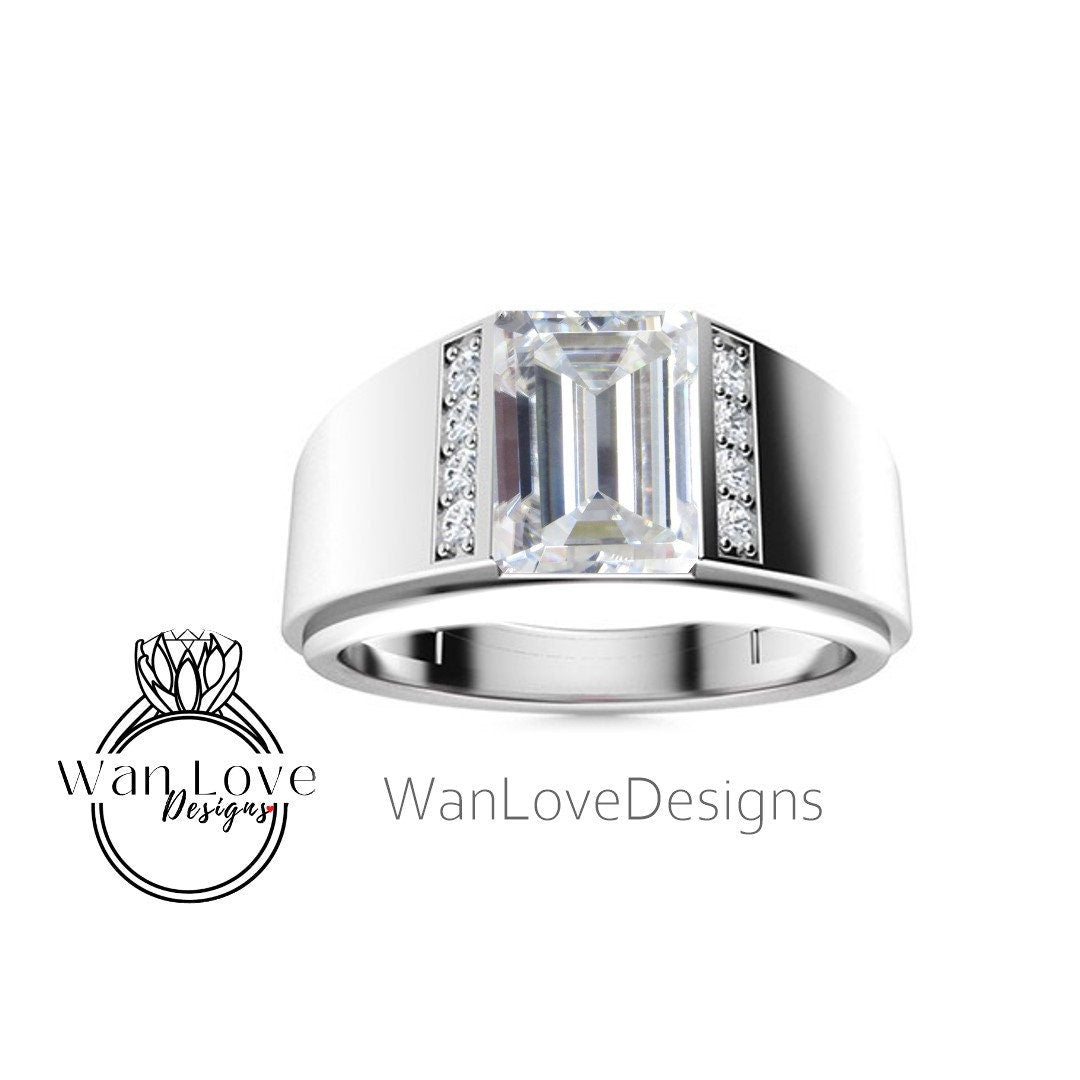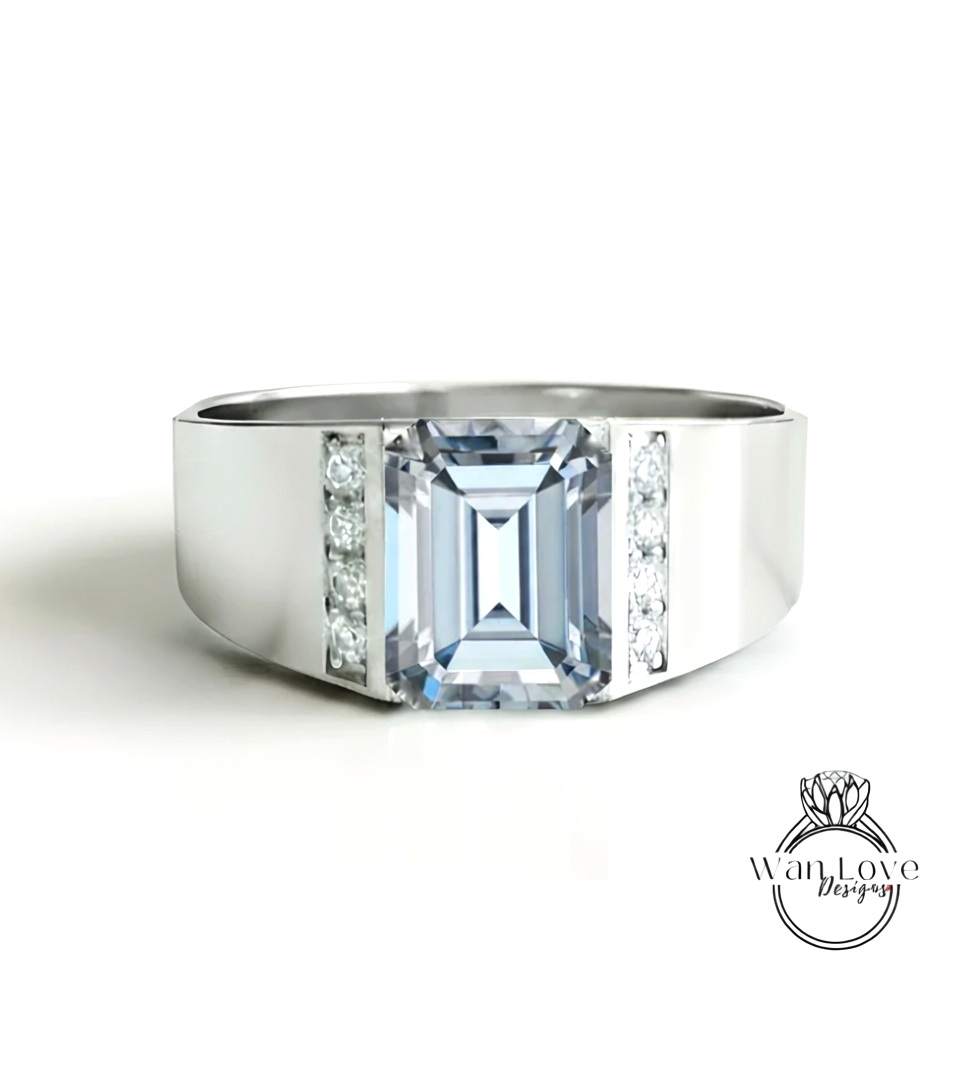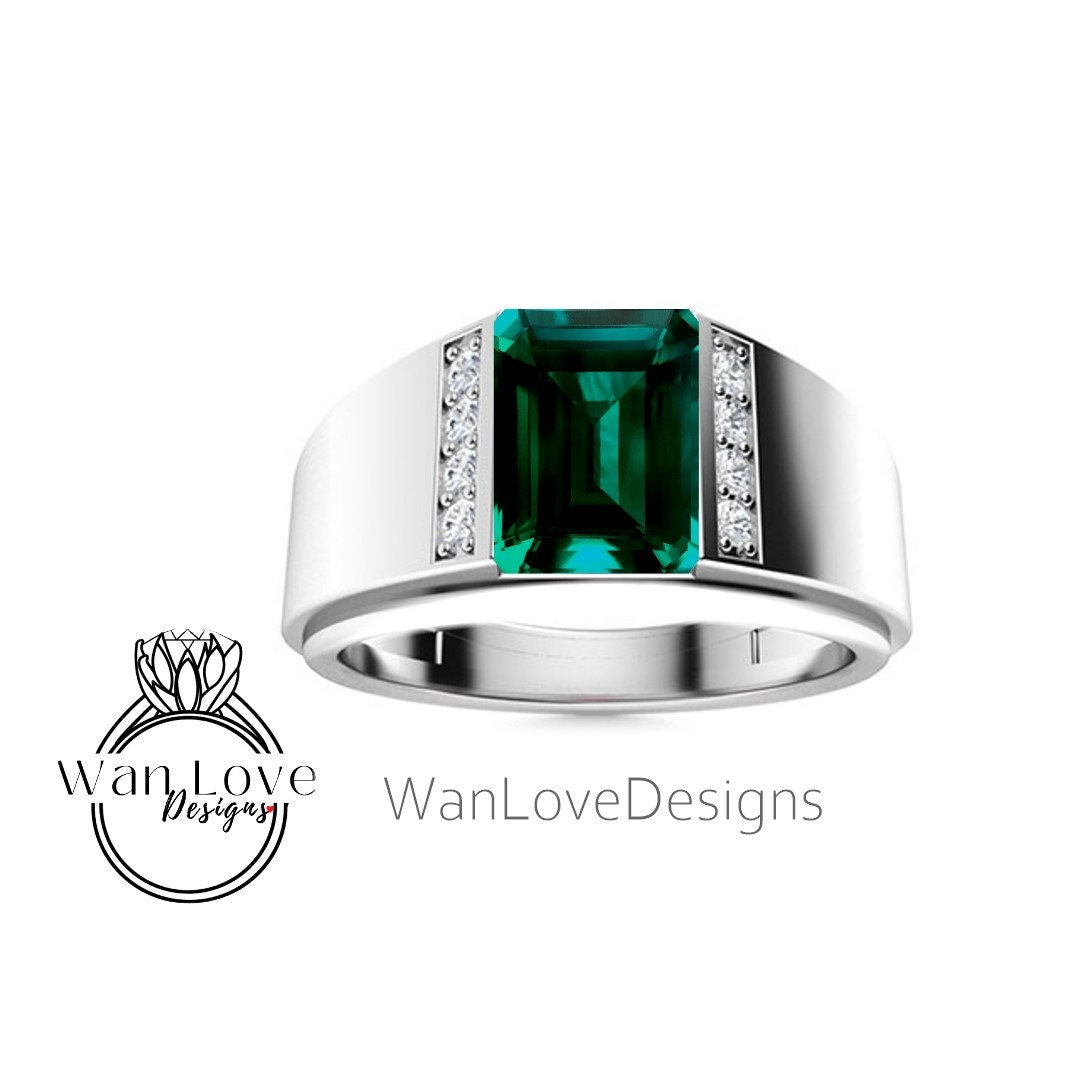 Fede nuziale da uomo in spinello nero | Fascia da uomo in oro bianco smeraldo da 2 ct | Fede nuziale con diamante nero taglio smeraldo | La sua fede nuziale con la pietra portafortuna