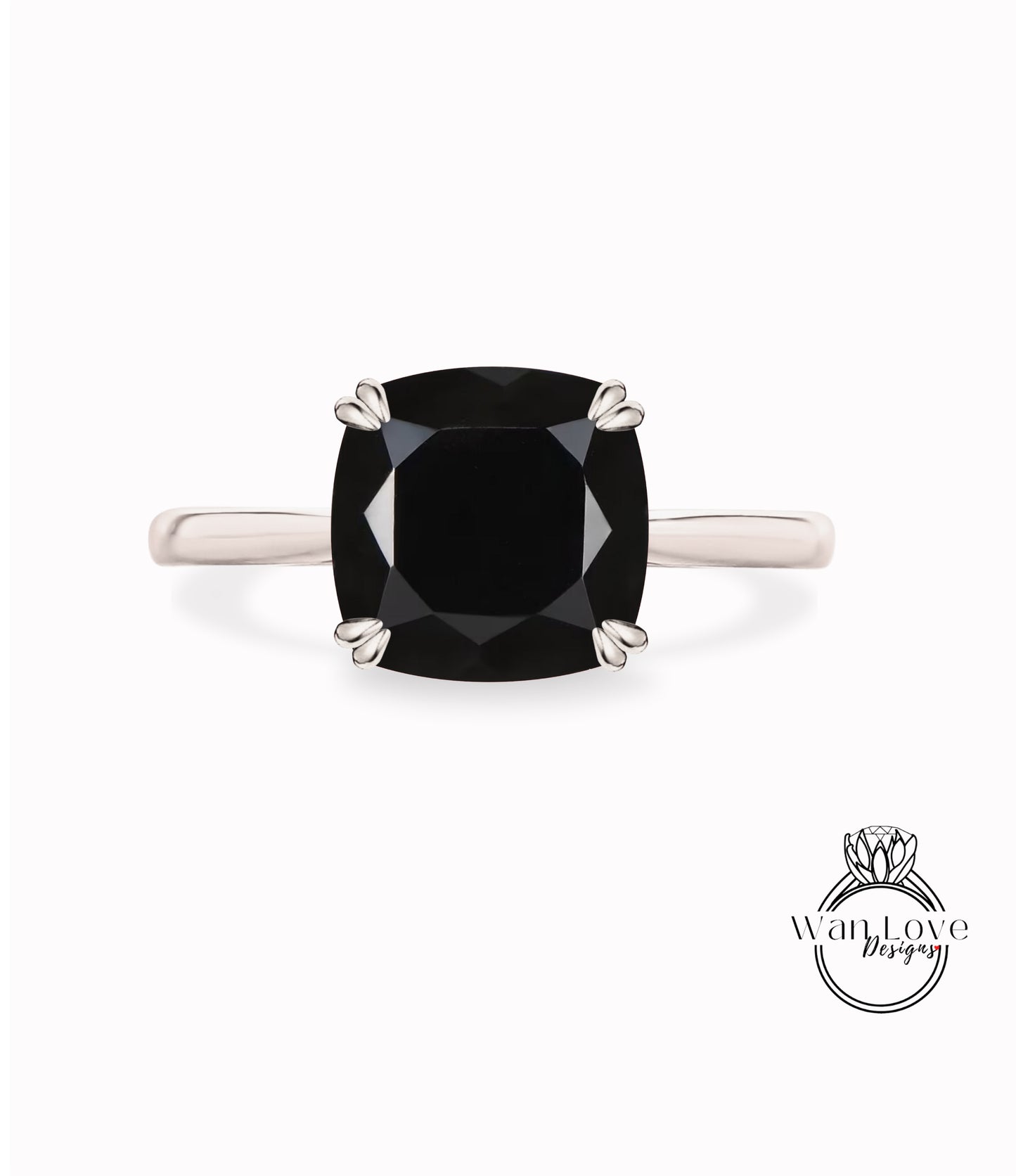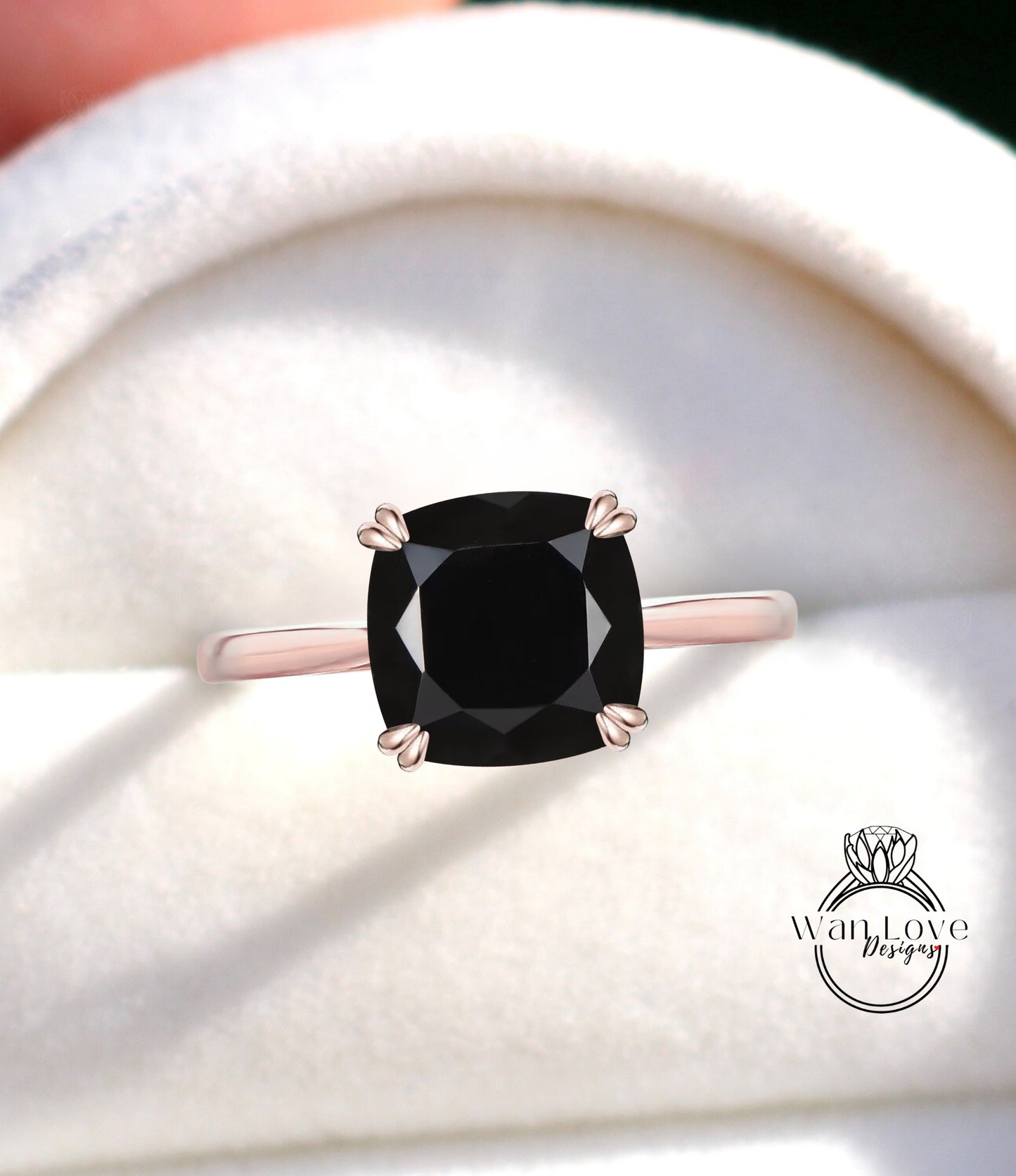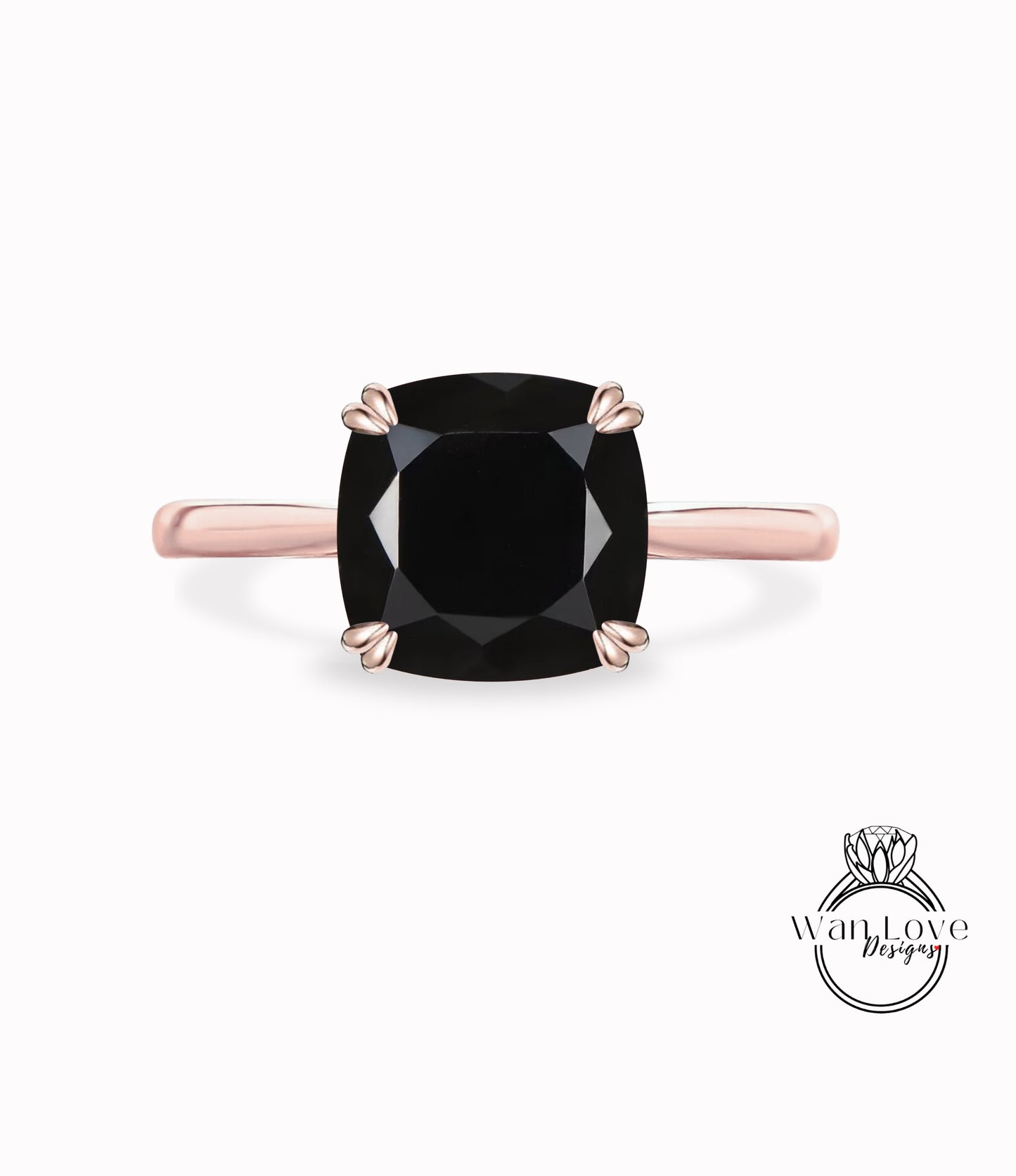 Anello di fidanzamento con cuscino solitario in spinello nero, oro rosa giallo bianco 14k 18k, platino, dimensioni su misura, matrimonio, anniversario, WanLoveDesigns.