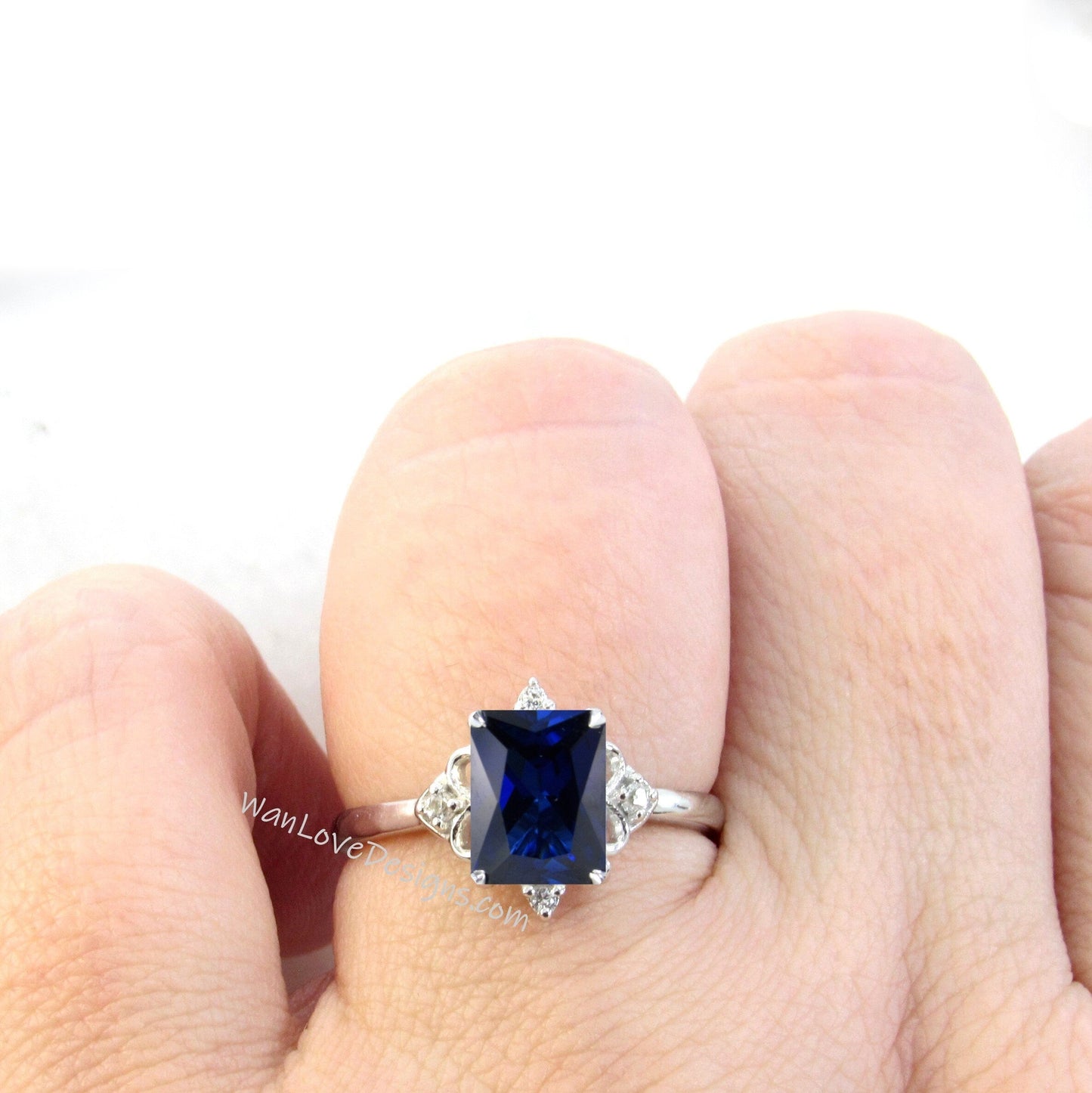 Anello di fidanzamento ornato in stile Art Déco con smeraldo delicato e diamanti, regalo per l'anniversario di matrimonio in oro 14kt 18kt, platino, WanLoveDesigns