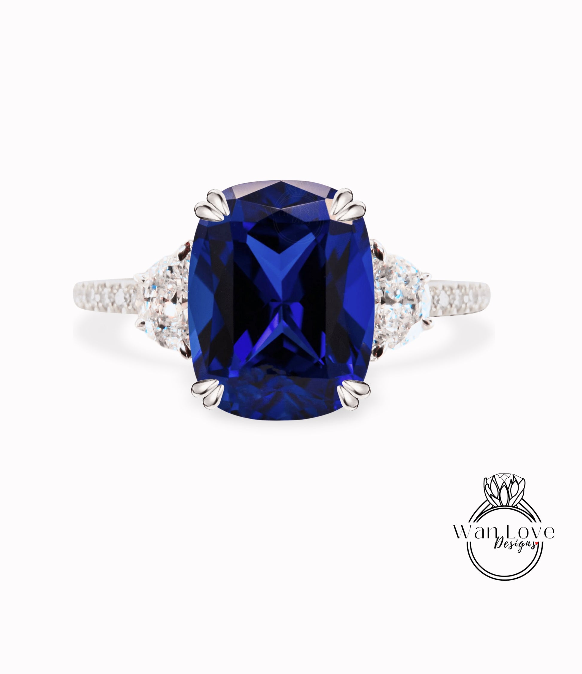 Anello di fidanzamento con diamanti smeraldo e moissanite Cuscino ovale mezza luna 3 pietre preziose 14k 18k bianco giallo oro rosa, platino, personalizzato. Questo può anche essere realizzato con gemme di diverse dimensioni/tipo, gemme di colore diverso per un nuovo look, ecc.