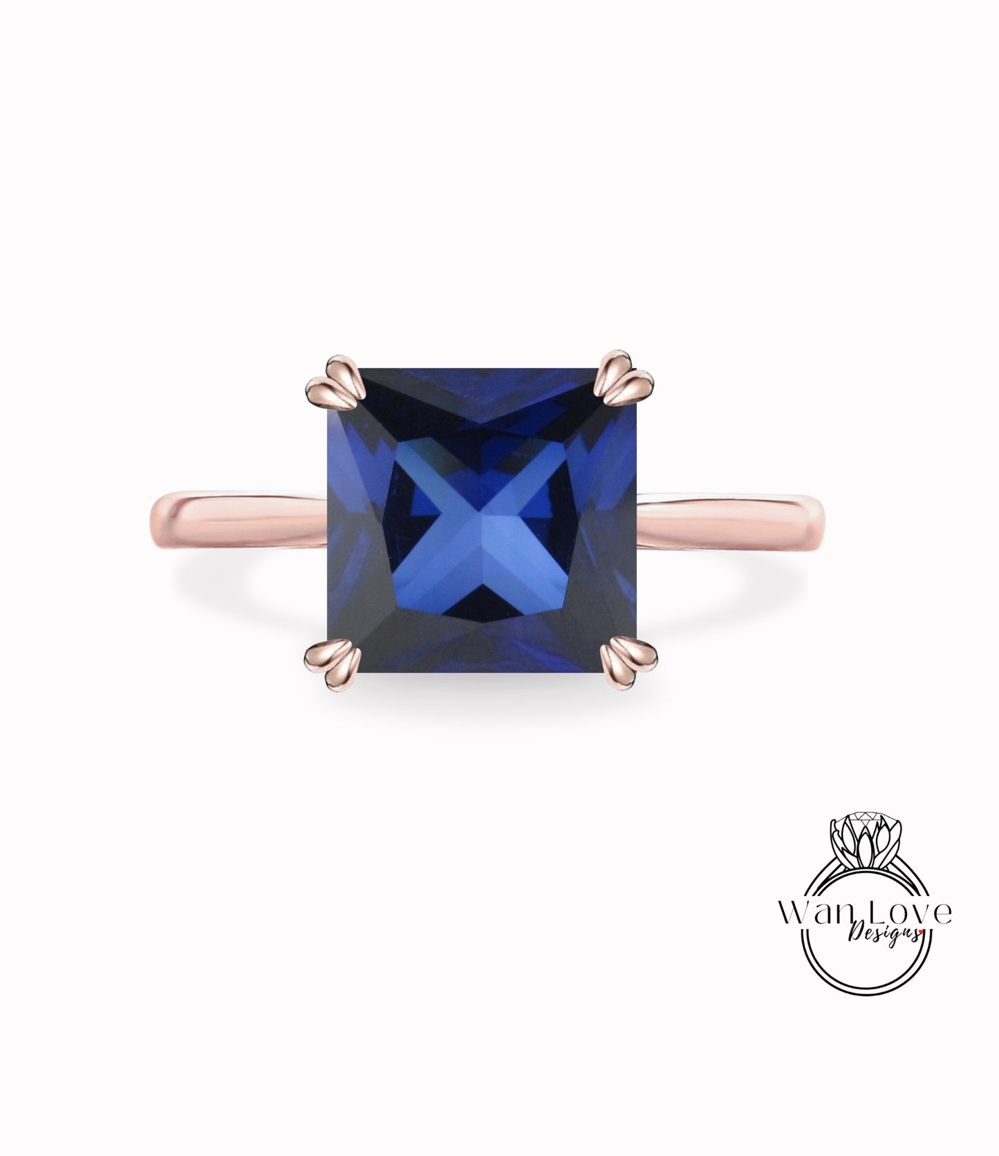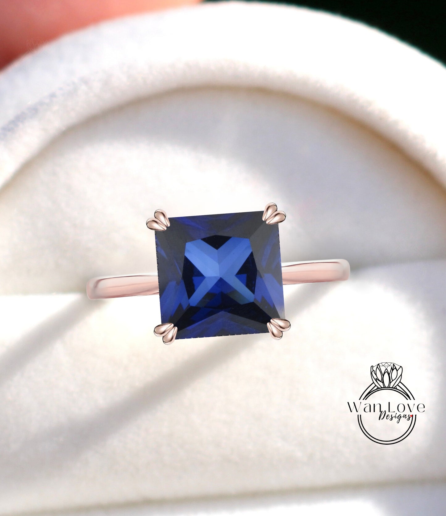 Anello di fidanzamento principessa quadrato solitario con zaffiro blu, personalizzato, matrimonio, regalo di anniversario, impegno, promessa, proposta, Asscher, WanLoveDesigns.