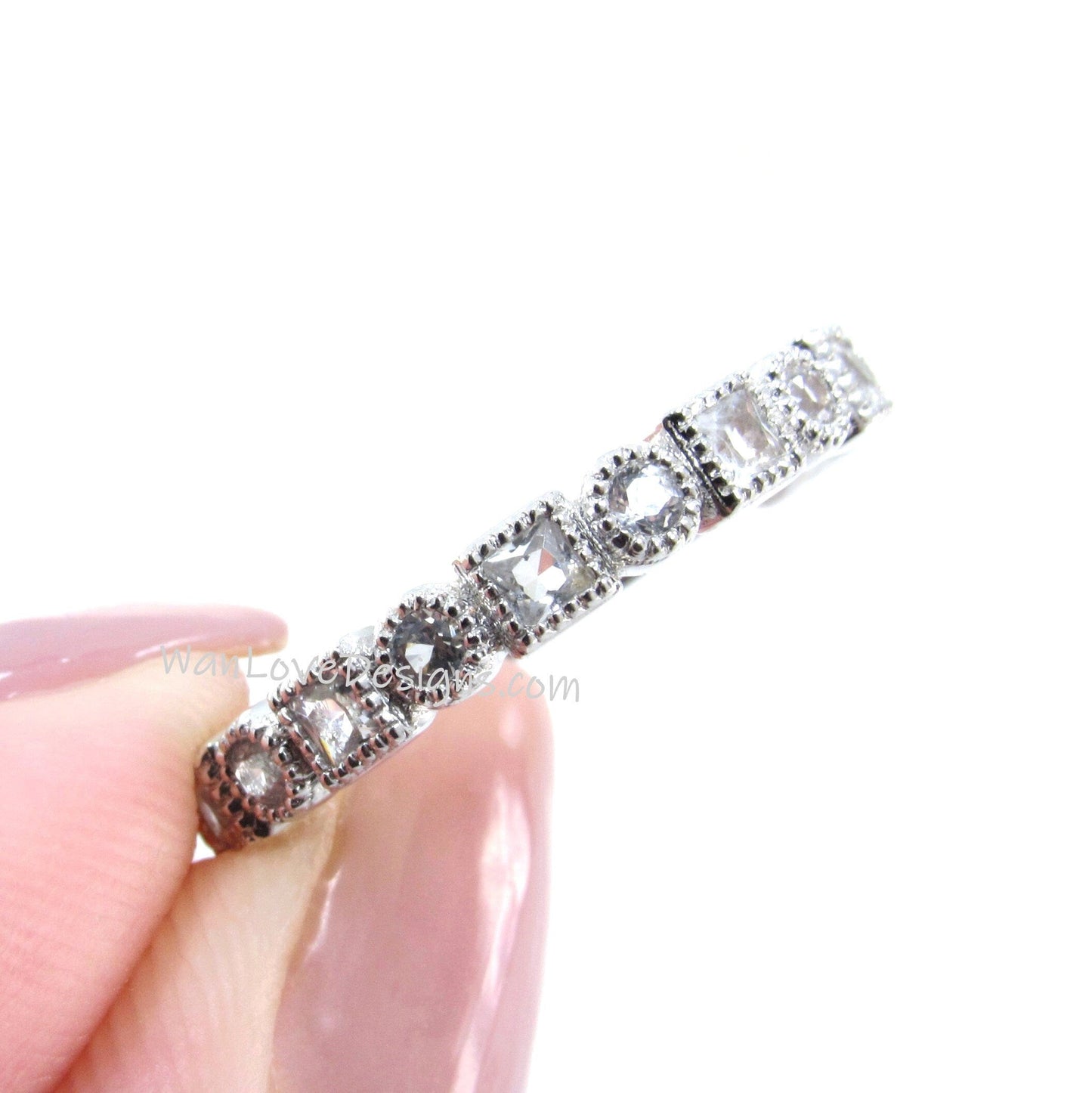 Gioielli fatti a mano/Fedi nuziali Moissanite quasi eterne/ Anelli con montatura a castone Milgrain/ Anelli di diamanti/ Anelli regalo di anniversario perfetti