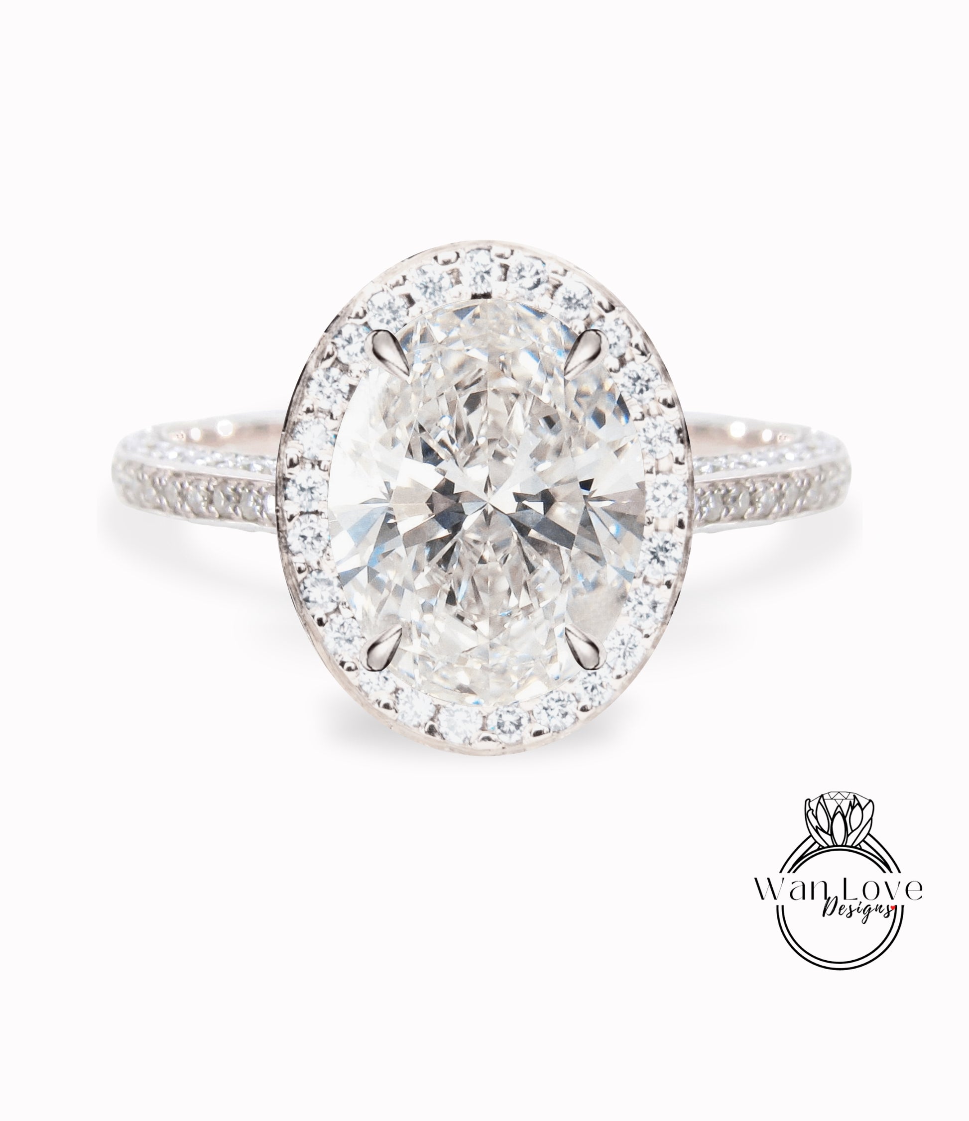 Anello di fidanzamento ovale da 2 ct, oro rosa e bianco 14k/18k, anello di diamanti ovale, anello di fidanzamento con diamante a taglio ovale, anello a fascia con diamante IGI ovale a 3 lati Halo