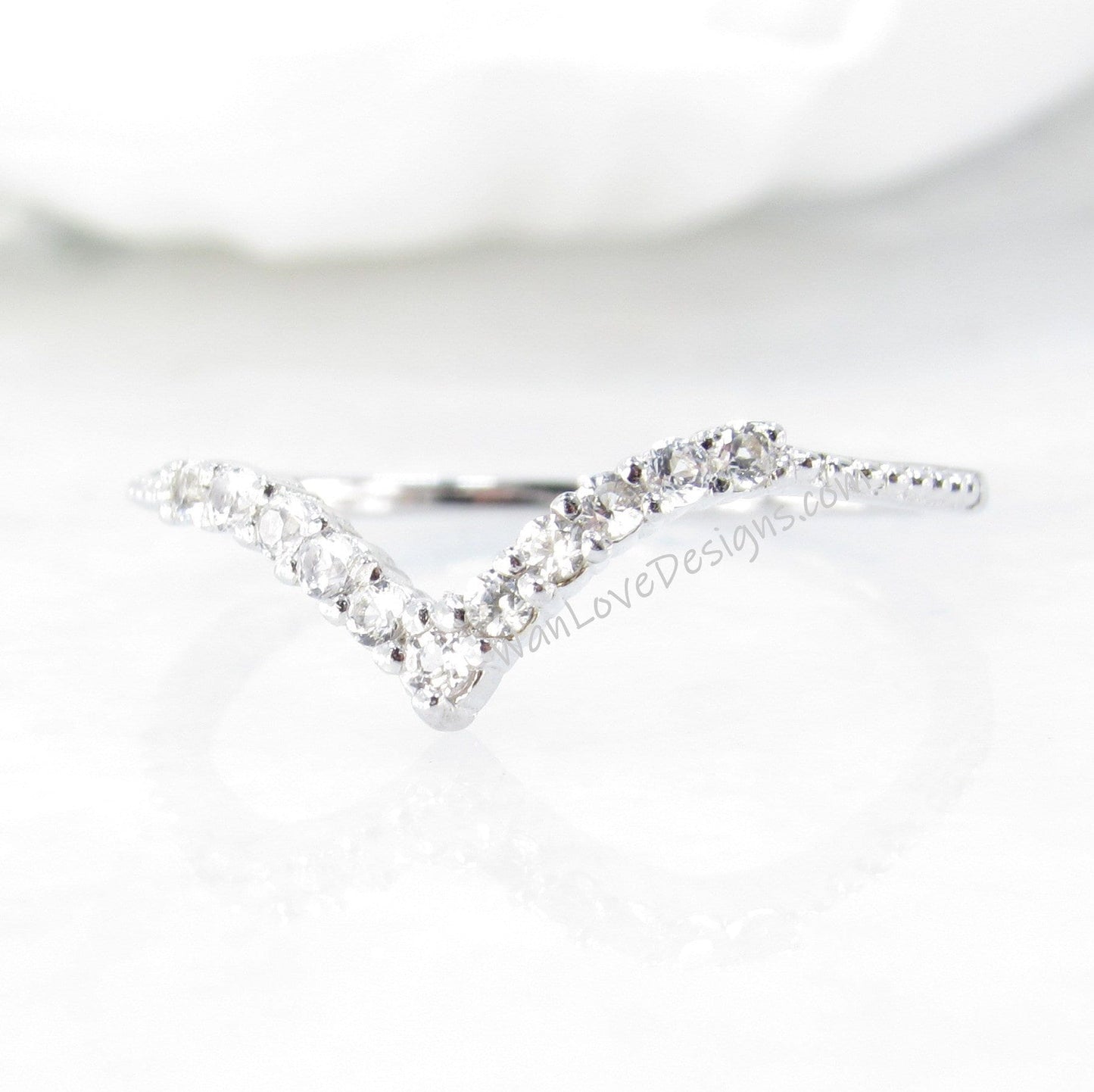 Fede nuziale con diamanti, fascia Chevron con zaffiri, anello in oro V Moissanite, anelli in oro impilabili