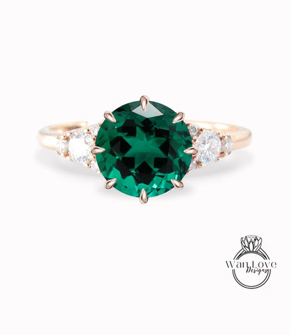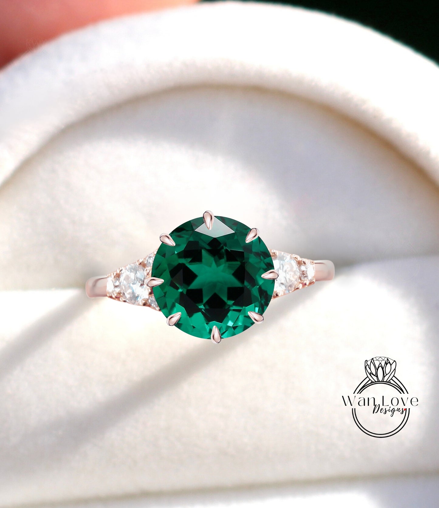 Anello di fidanzamento rotondo con smeraldo vintage in oro rosa Art Deco Cluster anello di fidanzamento da donna 8 poli Moissanite regalo di anniversario nuziale.