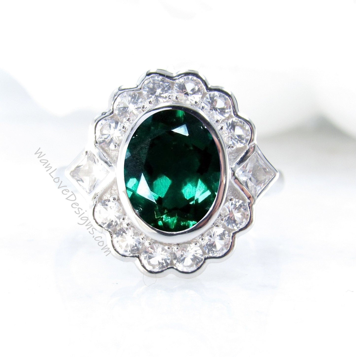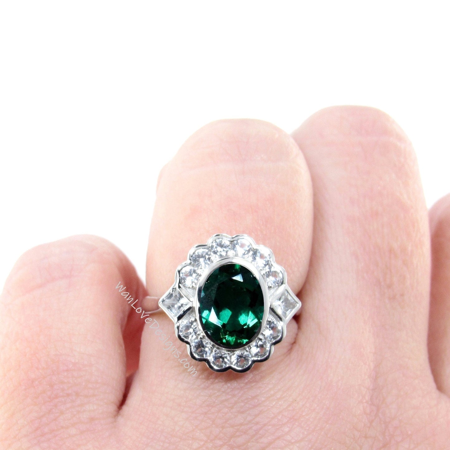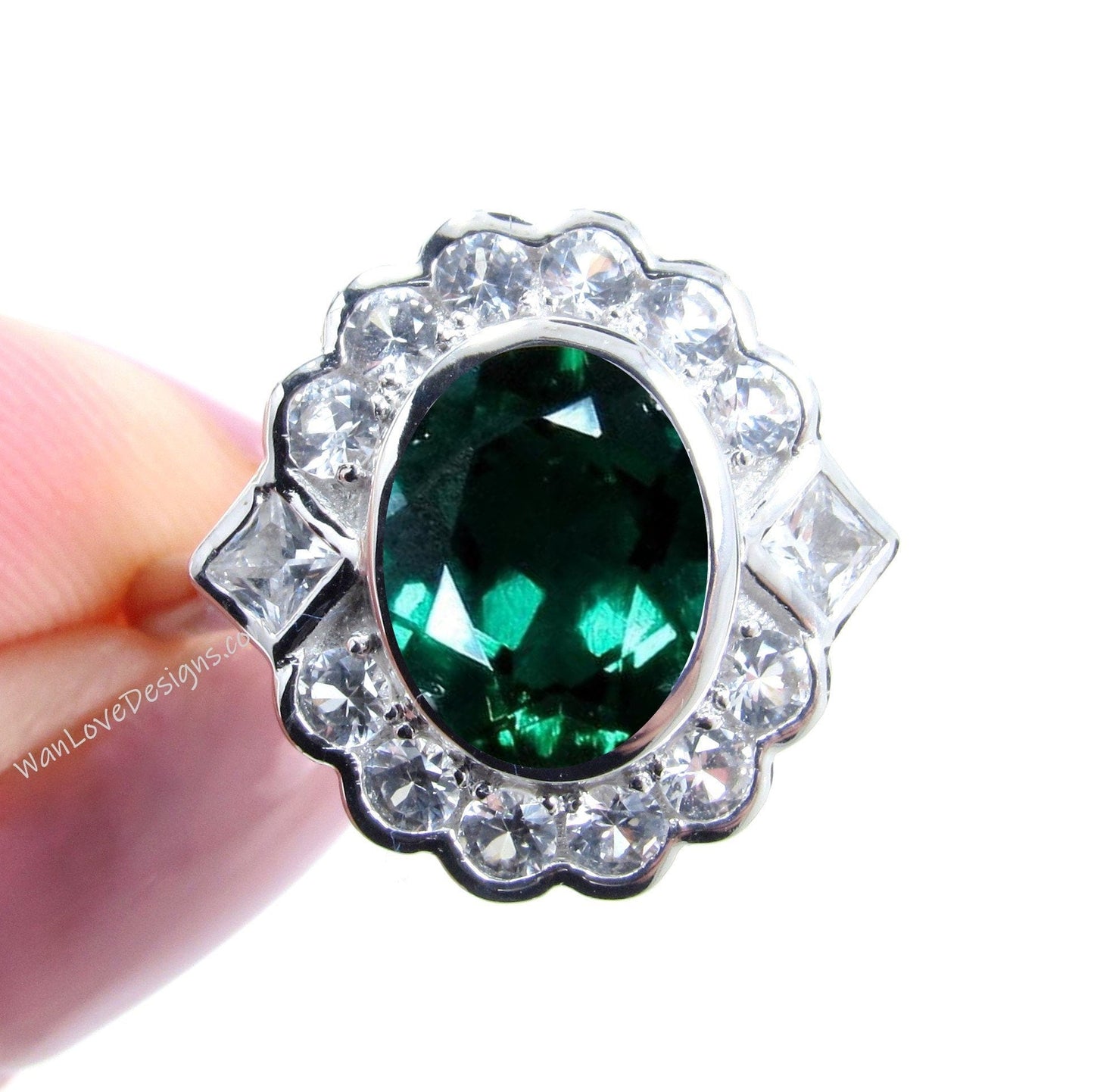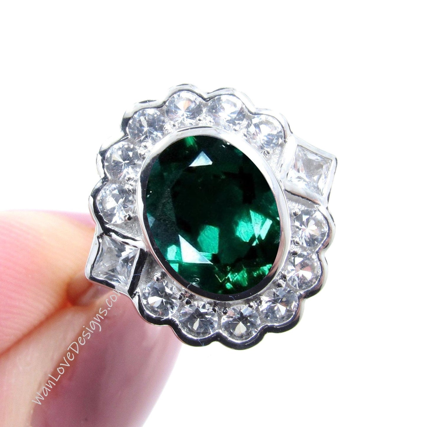 Anello di fidanzamento con smeraldo e moissanite ovale con semi castoni a grappolo principessa rotondo Halo Gioielli da sposa personalizzati