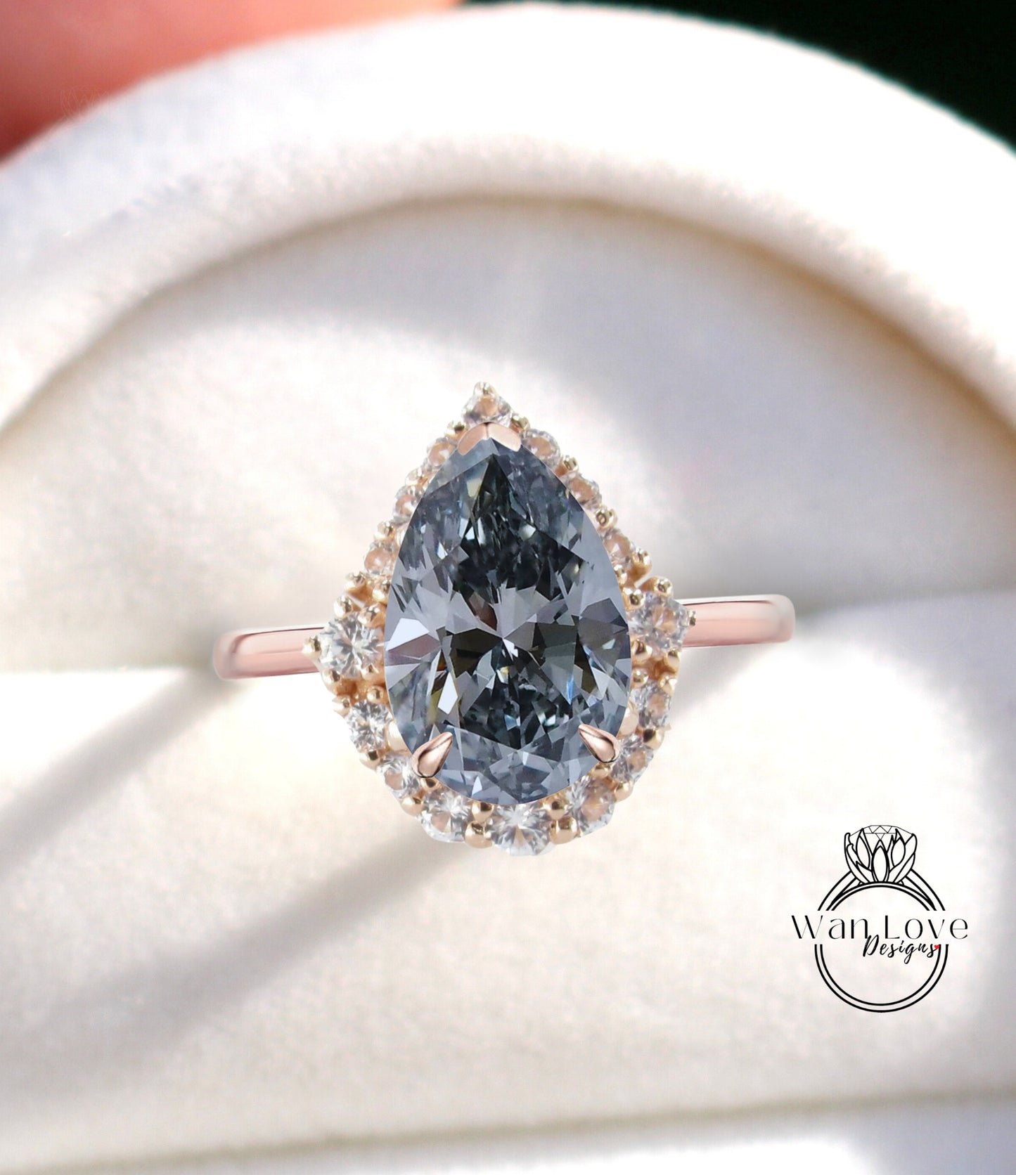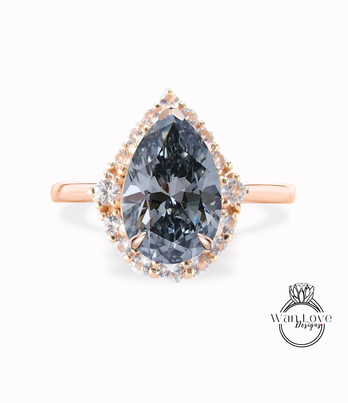 Anello di fidanzamento vintage da 2 ct | Anello nuziale unico con diamante moissanite grigio | Anello nuziale con alone a forma di pera a grappolo | Anello anniversario antico