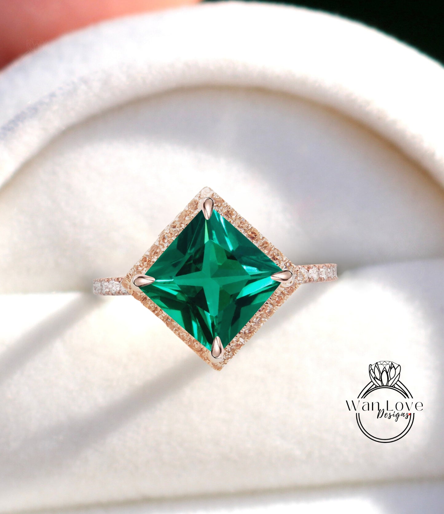 Anello aureola con diamante aquilone, anello con diamante smeraldo, anello di fidanzamento geometrico, anello con pietra preziosa verde aquilone