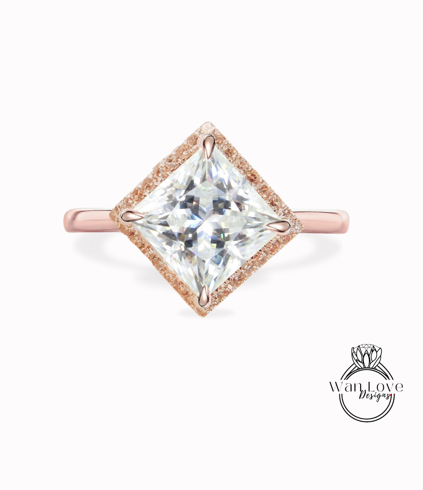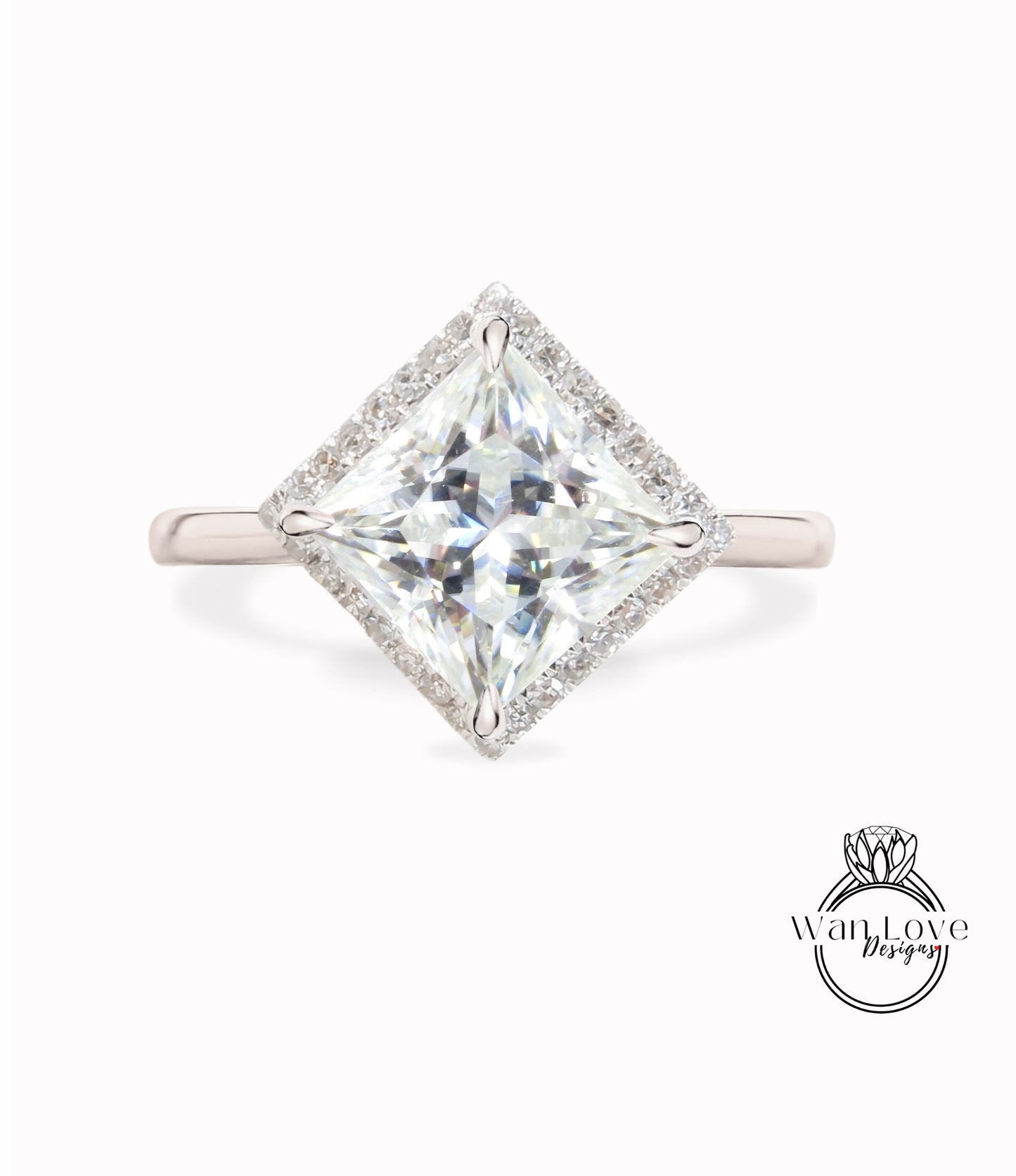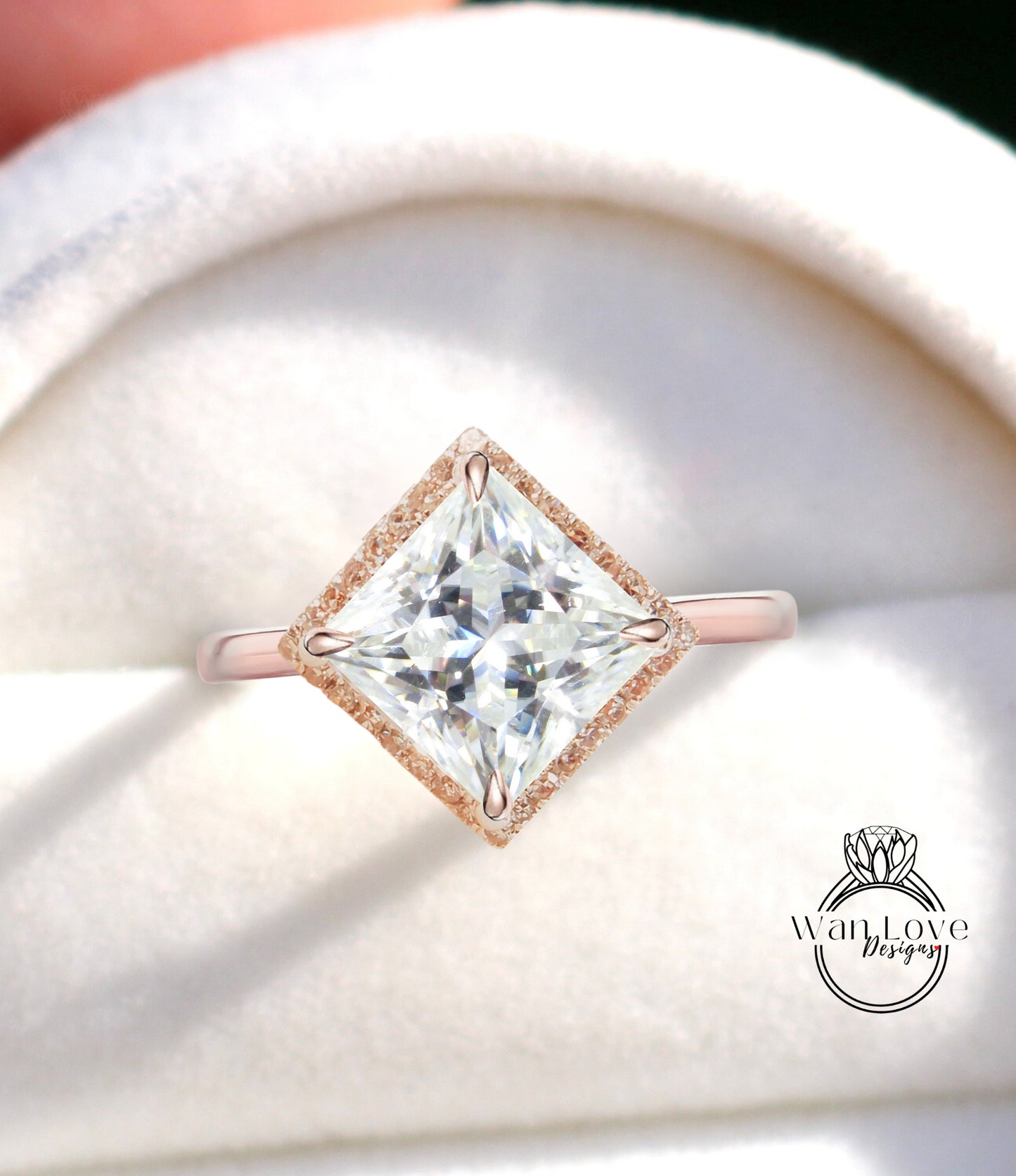 Set di aquiloni Princess Diamond Halo Ring, Moissanite unico anello a taglio principessa, anello di fidanzamento quadrato geometrico, anello a fascia semplice da donna Halo regalo