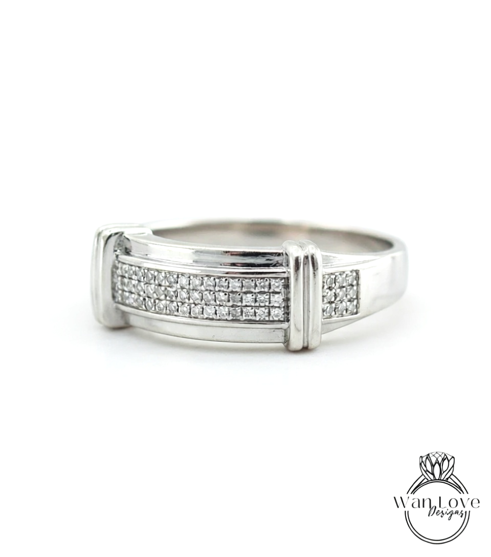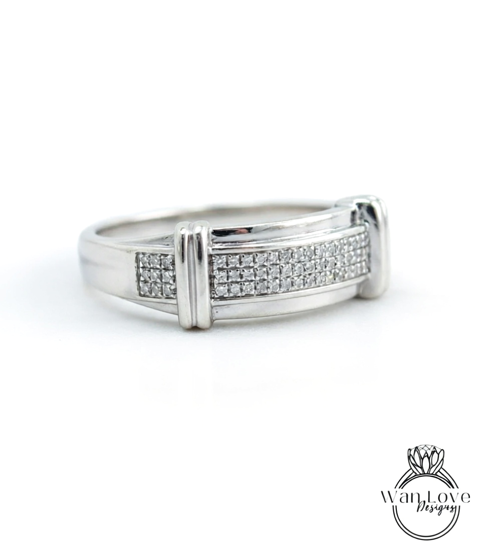 Fede nuziale da uomo con diamanti bianchi a 3 file, anello di fidanzamento con diamanti, regalo di anniversario per lui, promessa di impegno, pronto per la spedizione