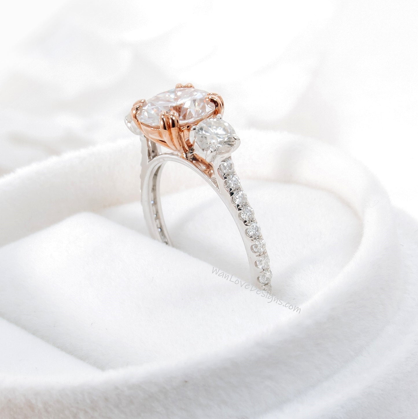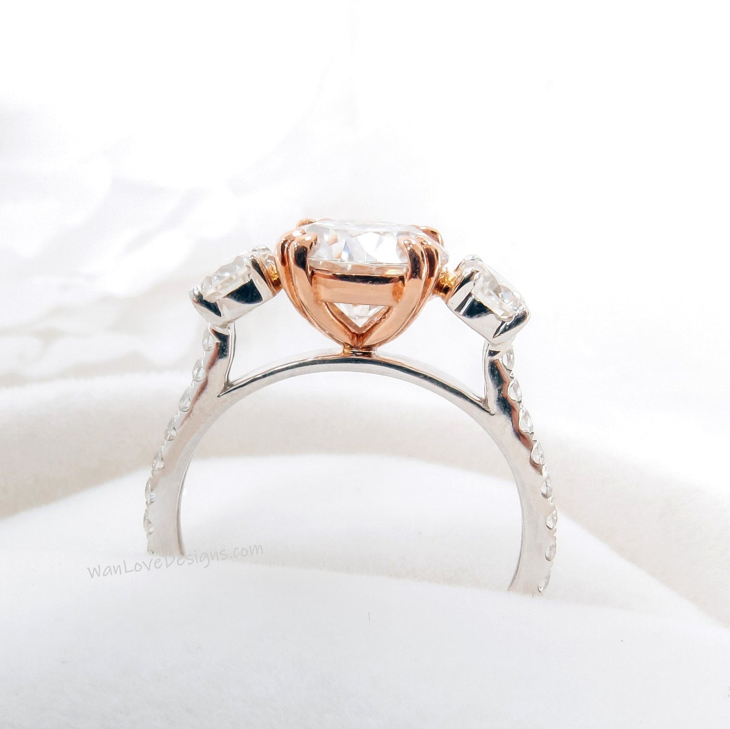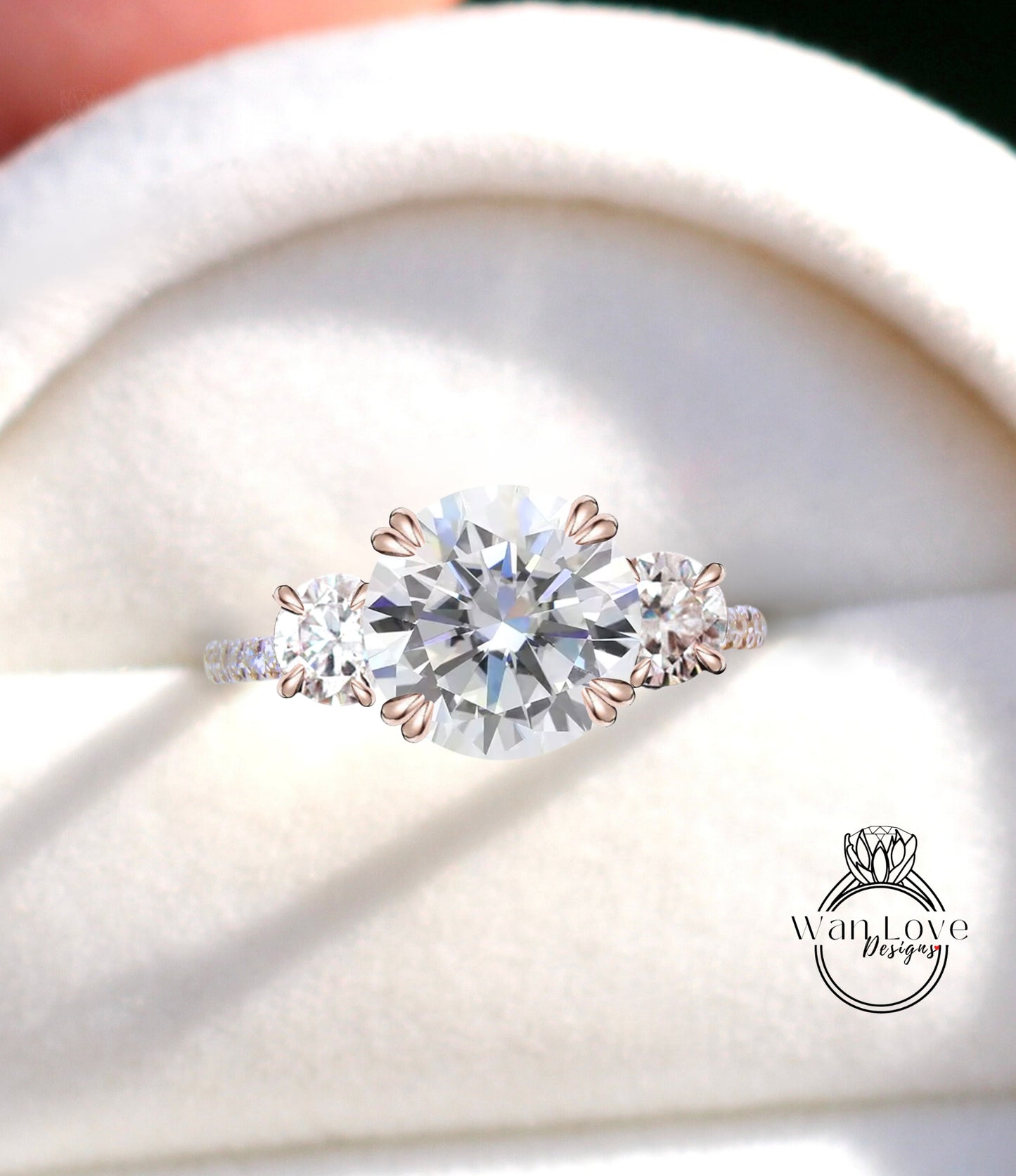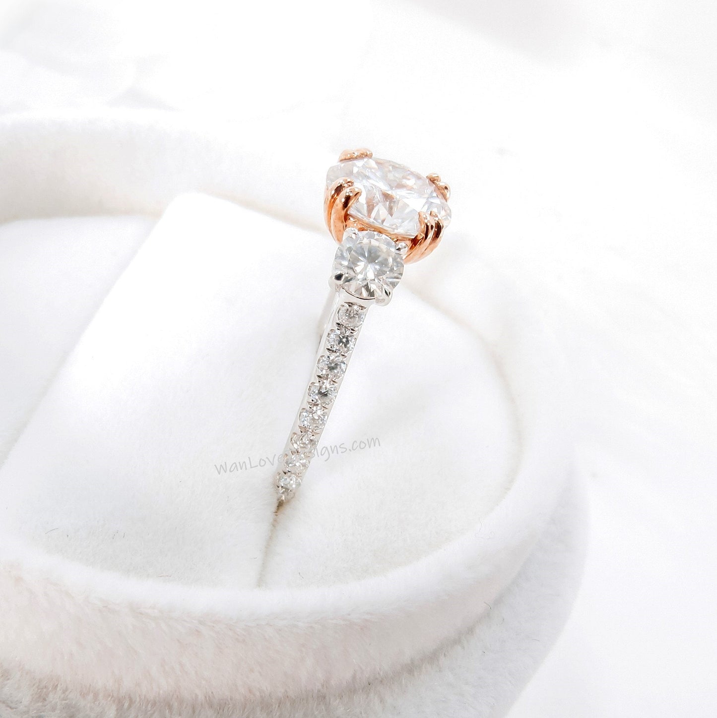 Anello con diamante Moissanite Anello con tre pietre Moissanite Anello di fidanzamento rotondo con moissanite Anello di fidanzamento con promessa di anniversario di matrimonio con diamanti