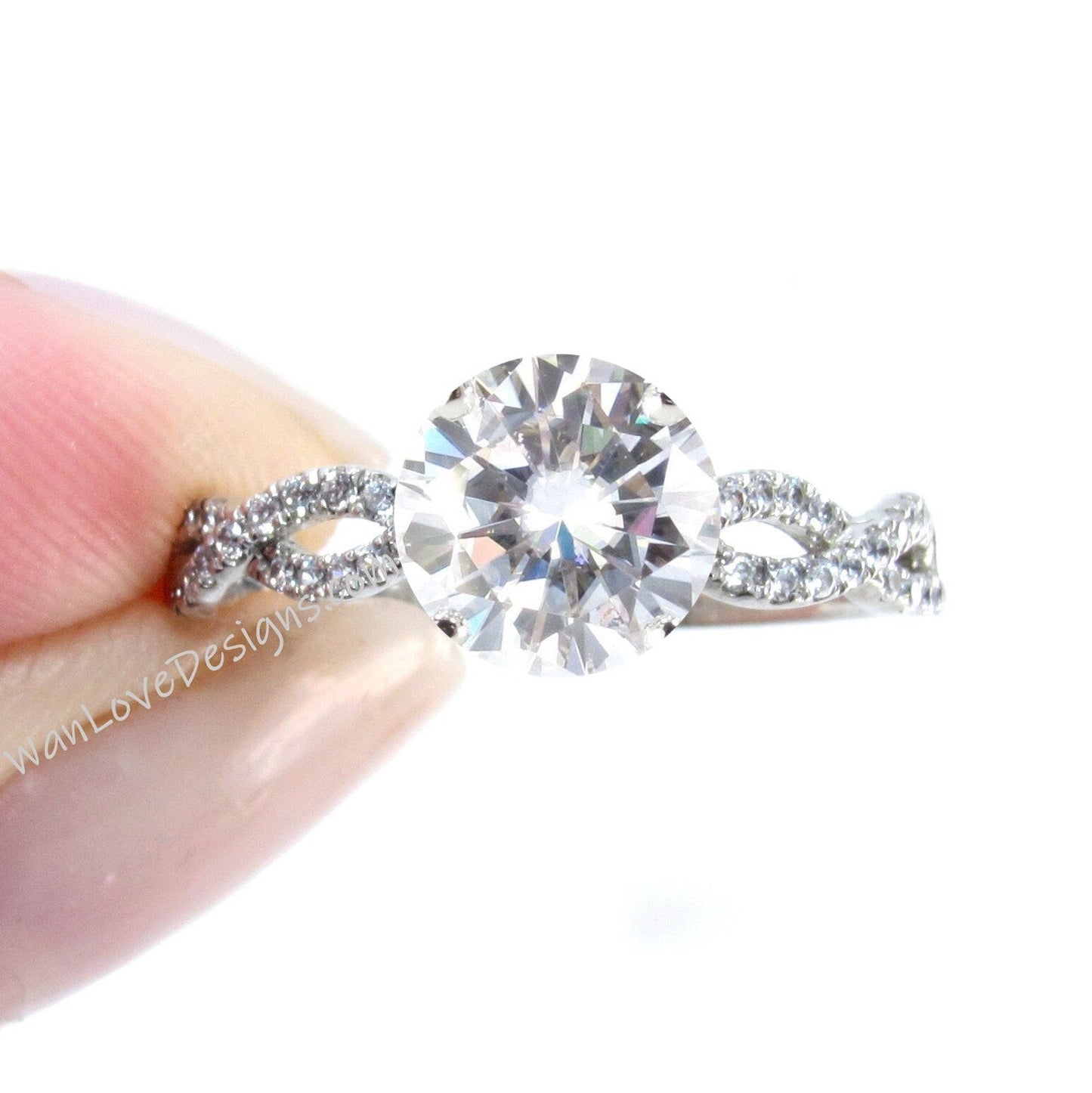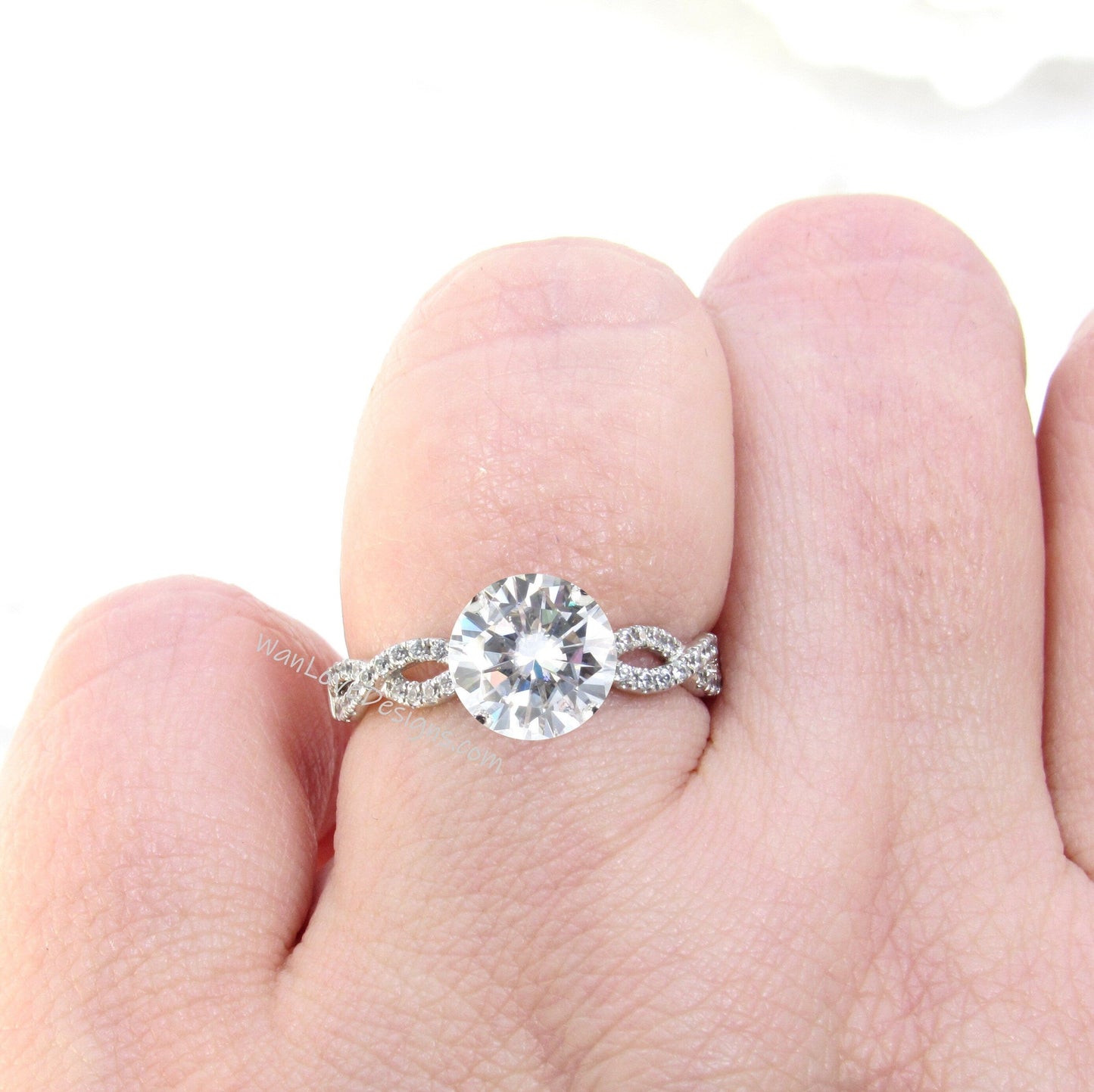 Set di anelli di fidanzamento con moissanite e diamanti Fede nuziale 3/4 Eternity Infinity Twist, Personalizzato, Regalo di anniversario, Oro giallo rosa bianco 14k 18k