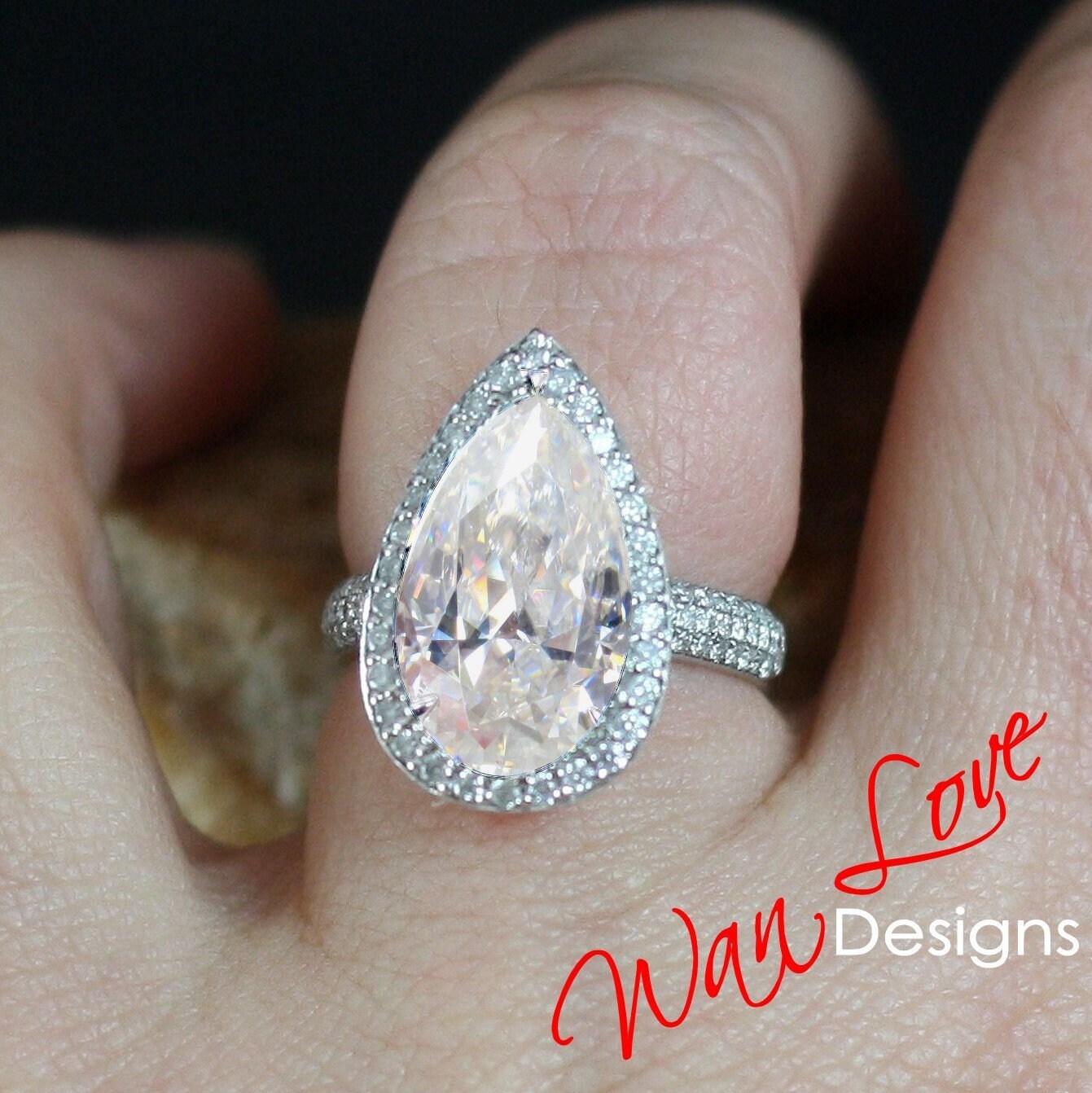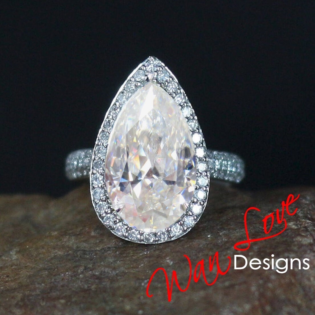 Anello di fidanzamento con Moissanite e diamanti Pera Halo, 6,5 ct, 16x9 mm, 14k 18k bianco giallo oro rosa-platino-su misura-anniversario di matrimonio, regalo