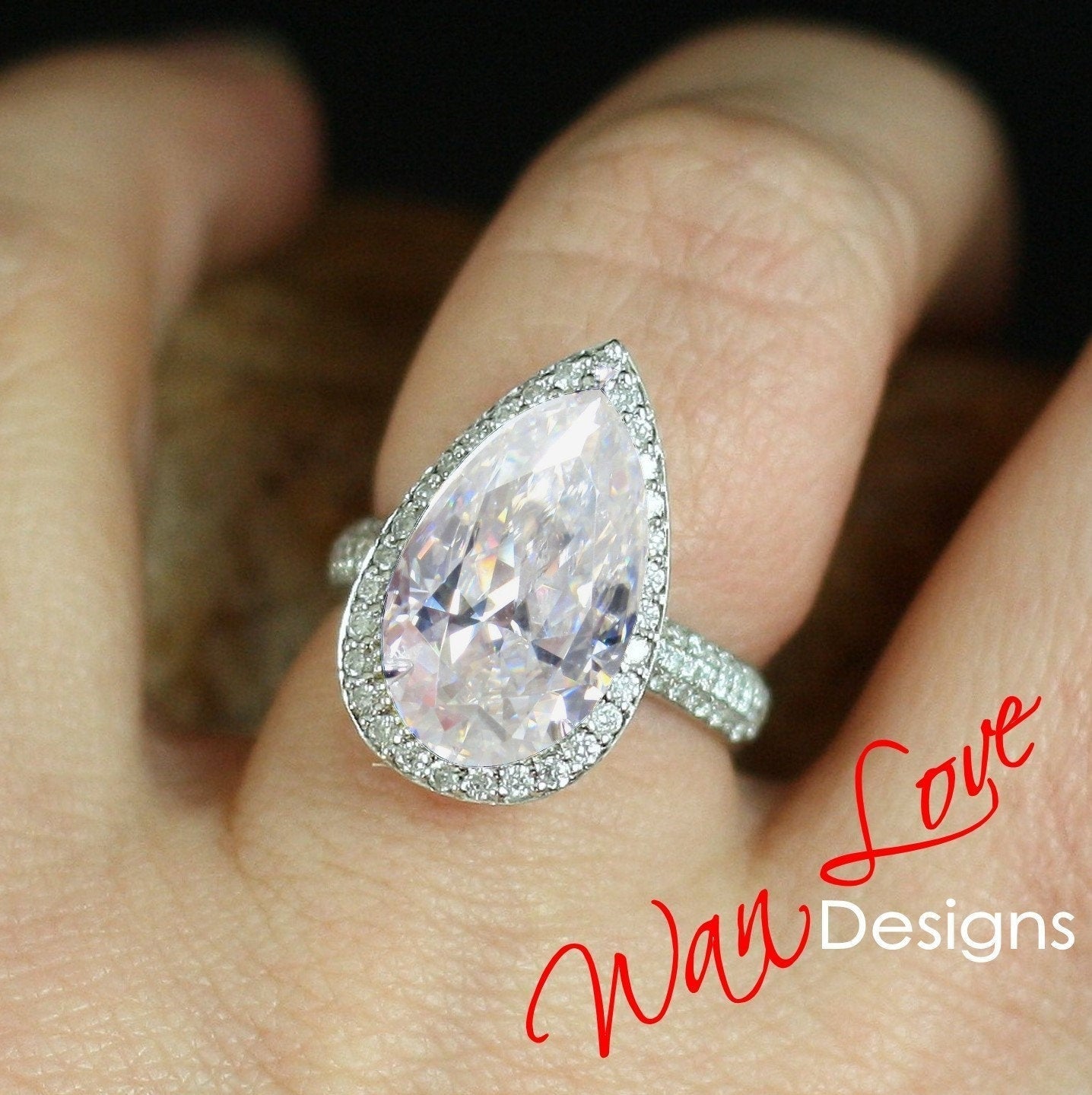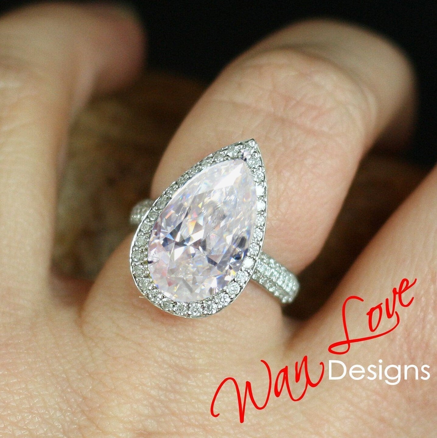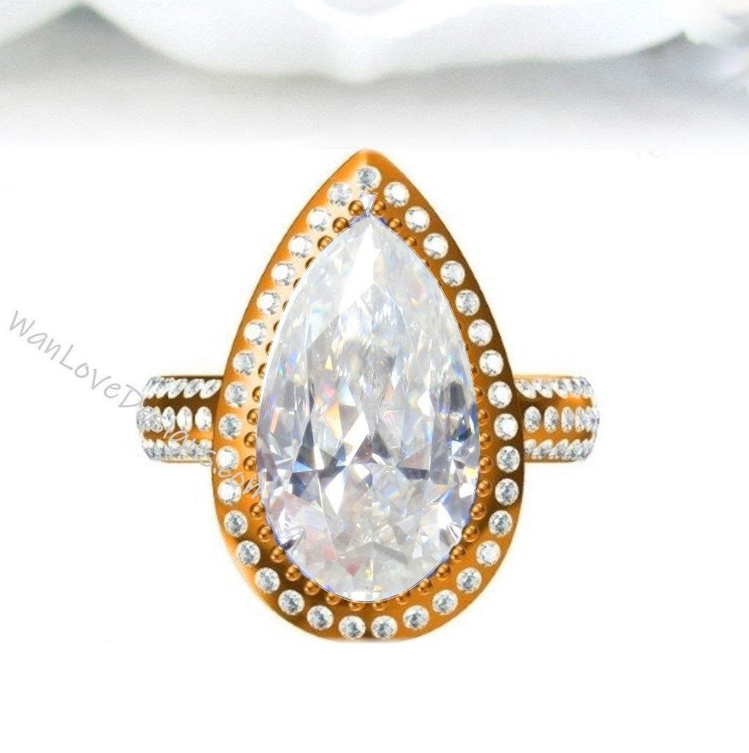 Anello di fidanzamento Halo con pera e diamanti con moissanite, 6,5 ct, 16x9 mm, oro rosa giallo bianco 18 kt 14 kt, platino, anniversario di matrimonio personalizzato, regalo.