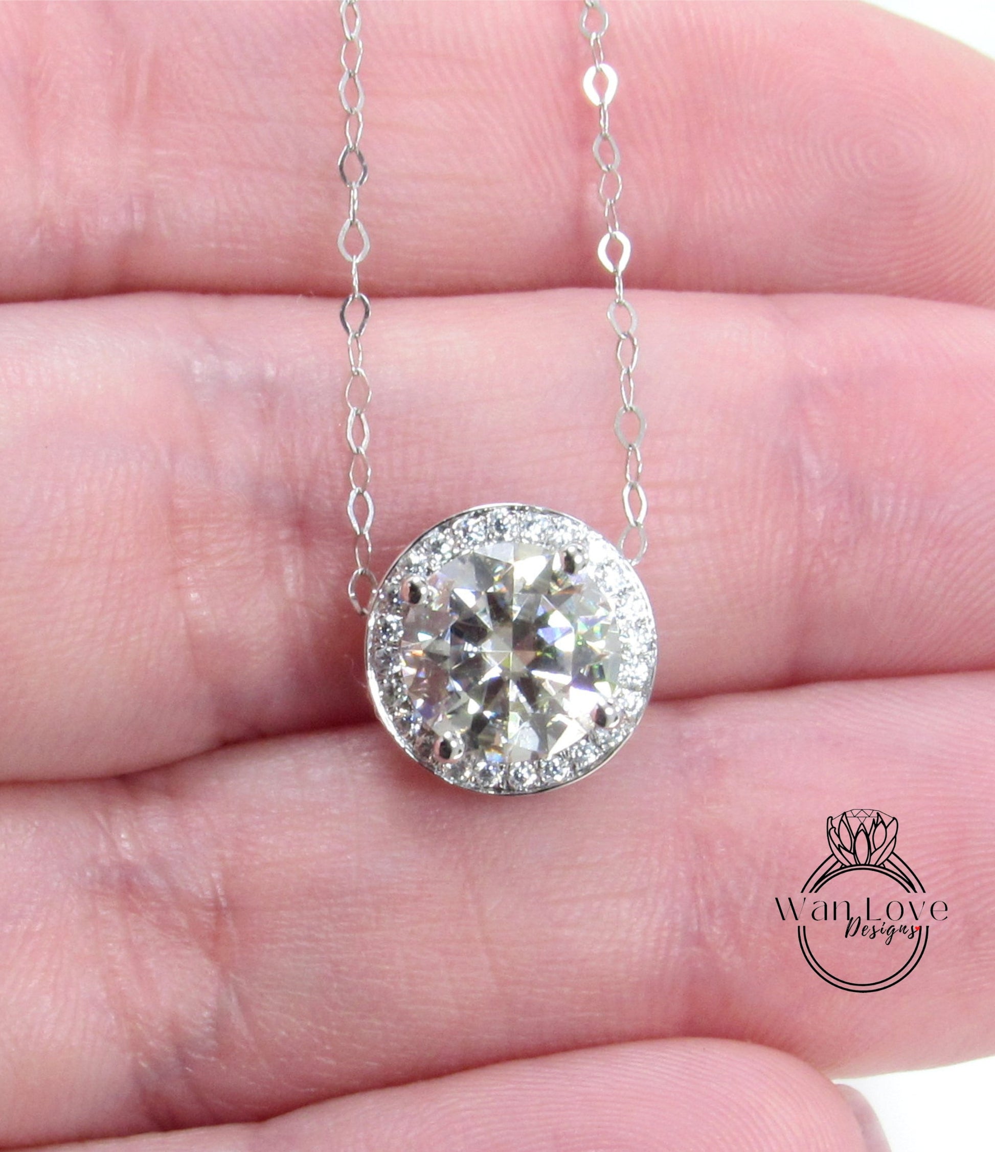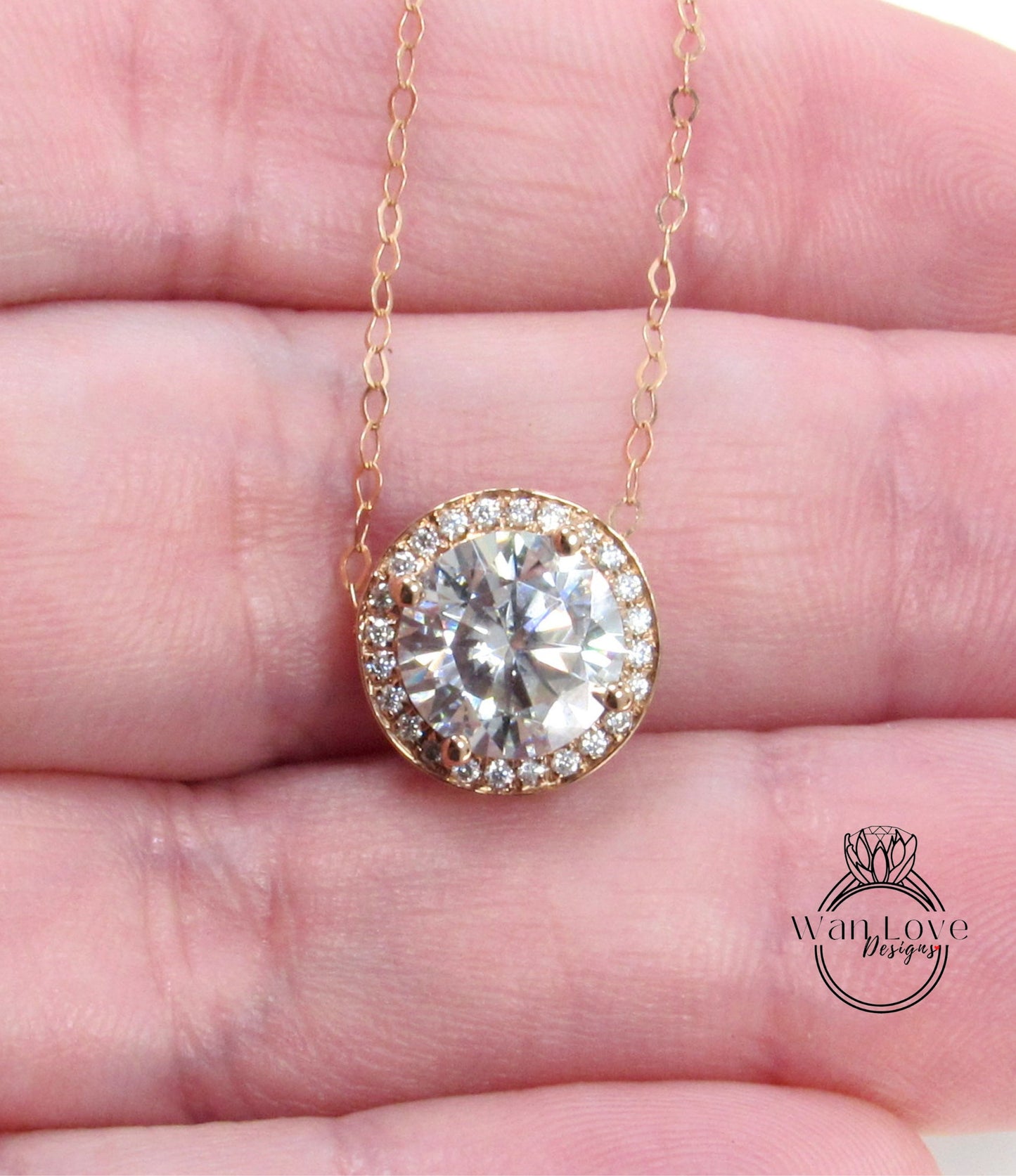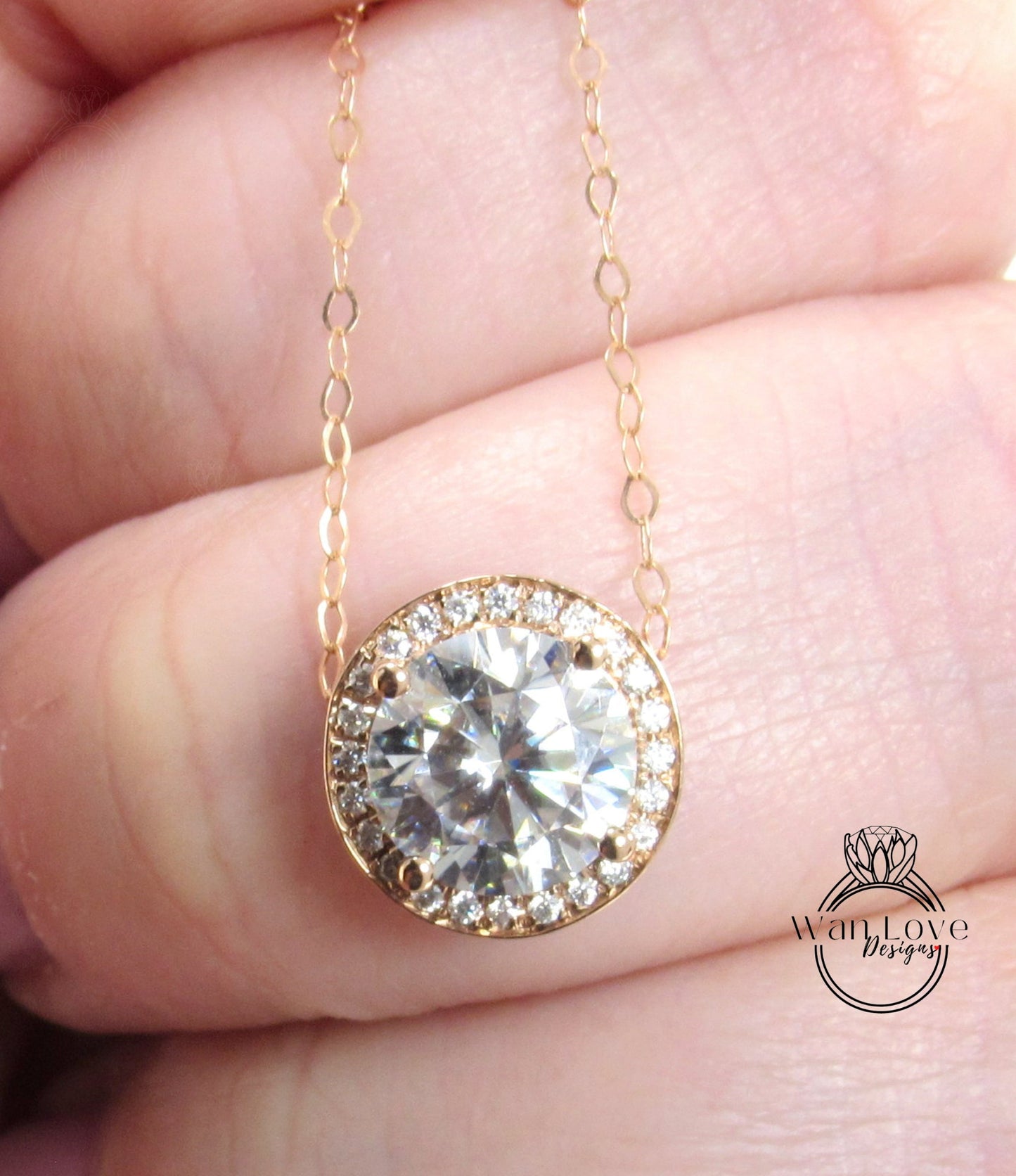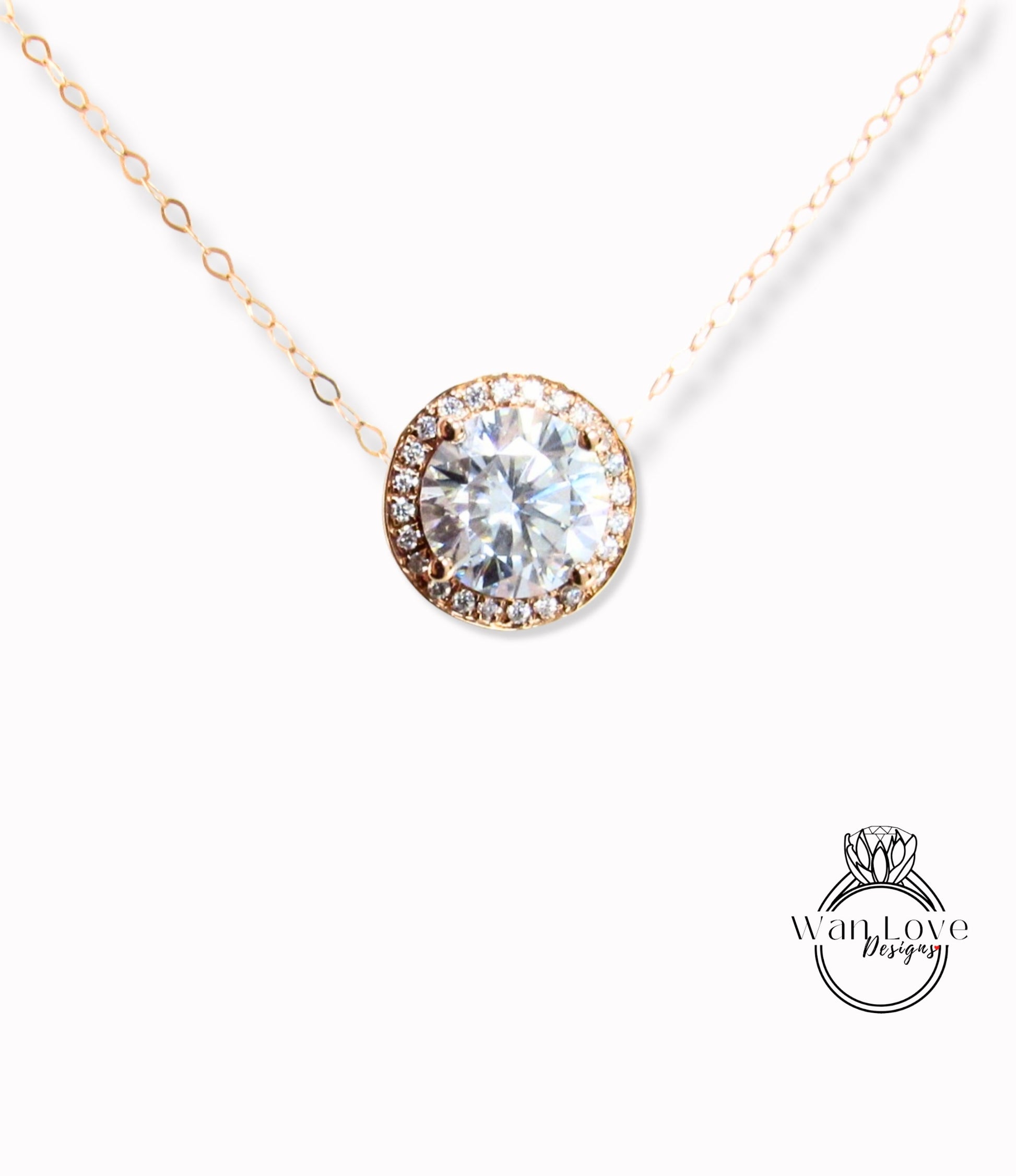 Ciondolo in moissanite a taglio rotondo | Ciondolo in moissanite Halo rotondo da 2 CTW | Ciondolo in oro rosa 14KT | Set collana da sposa | Collezione di regali di nozze