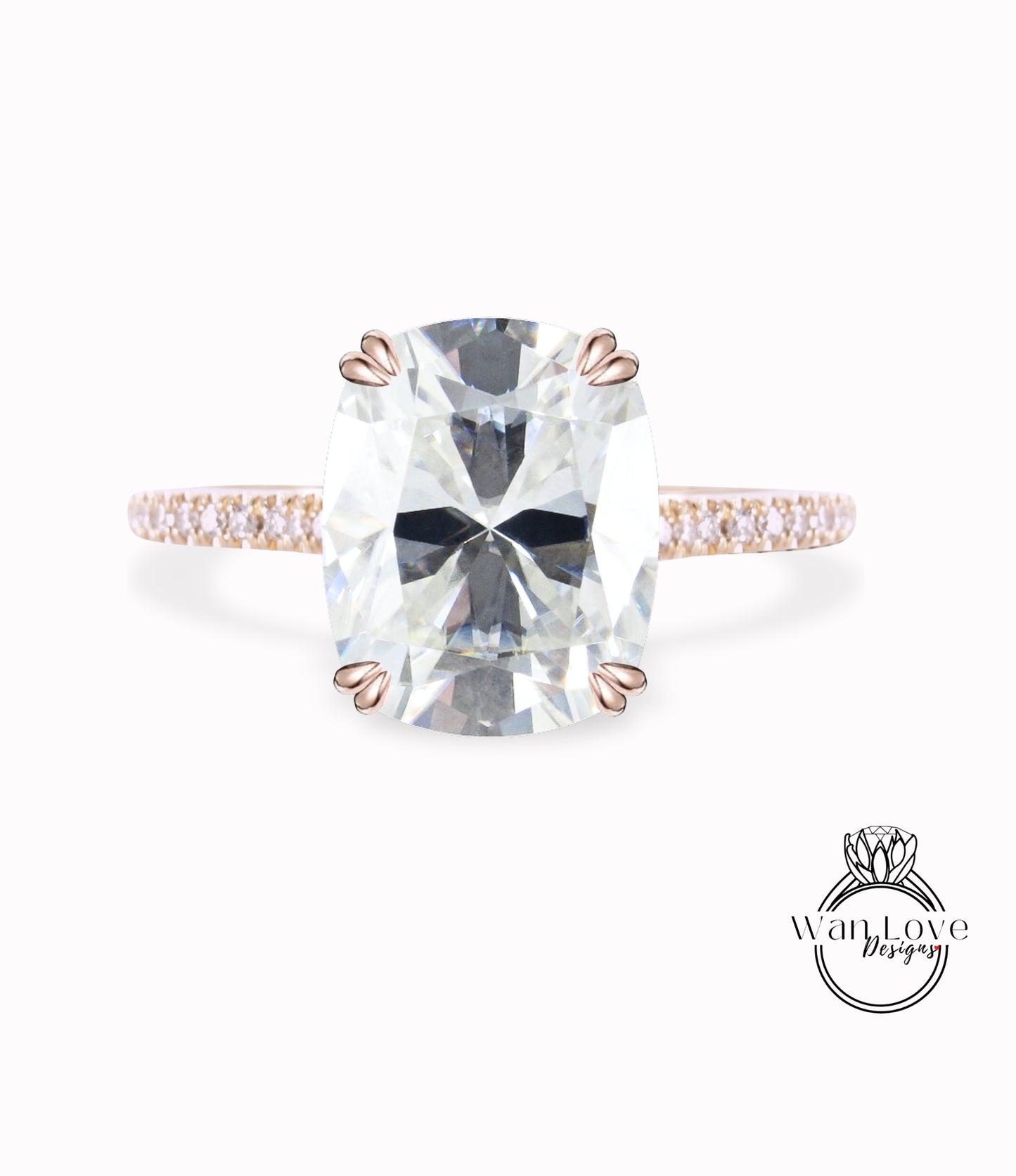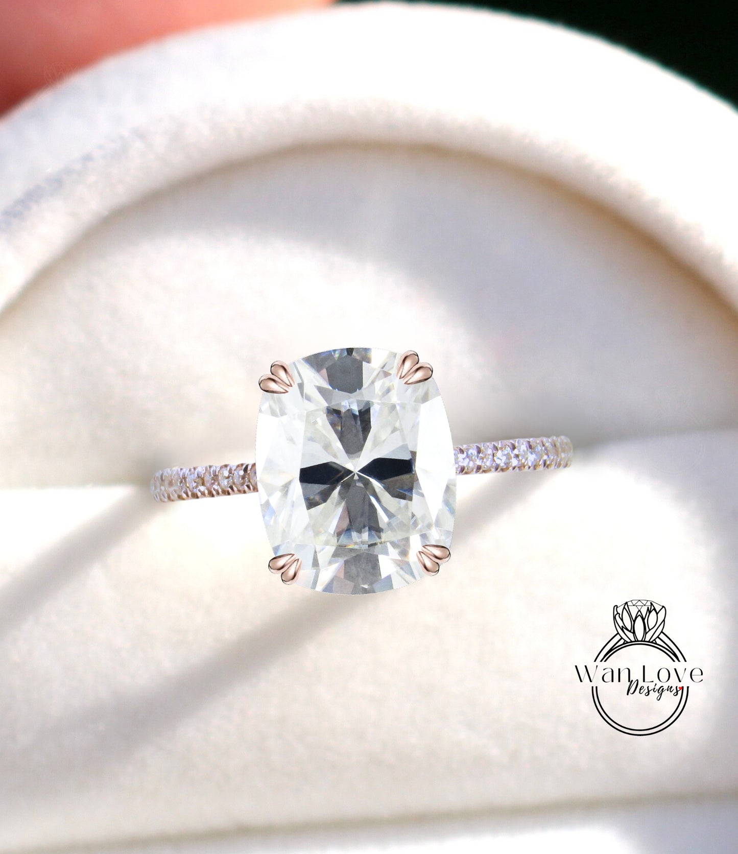 Anello di fidanzamento allungato in Moissanite con taglio a cuscino, in oro, con diamante vintage, anello di fidanzamento con aureola, da donna, per matrimonio, mezza eternità, anniversario nuziale.