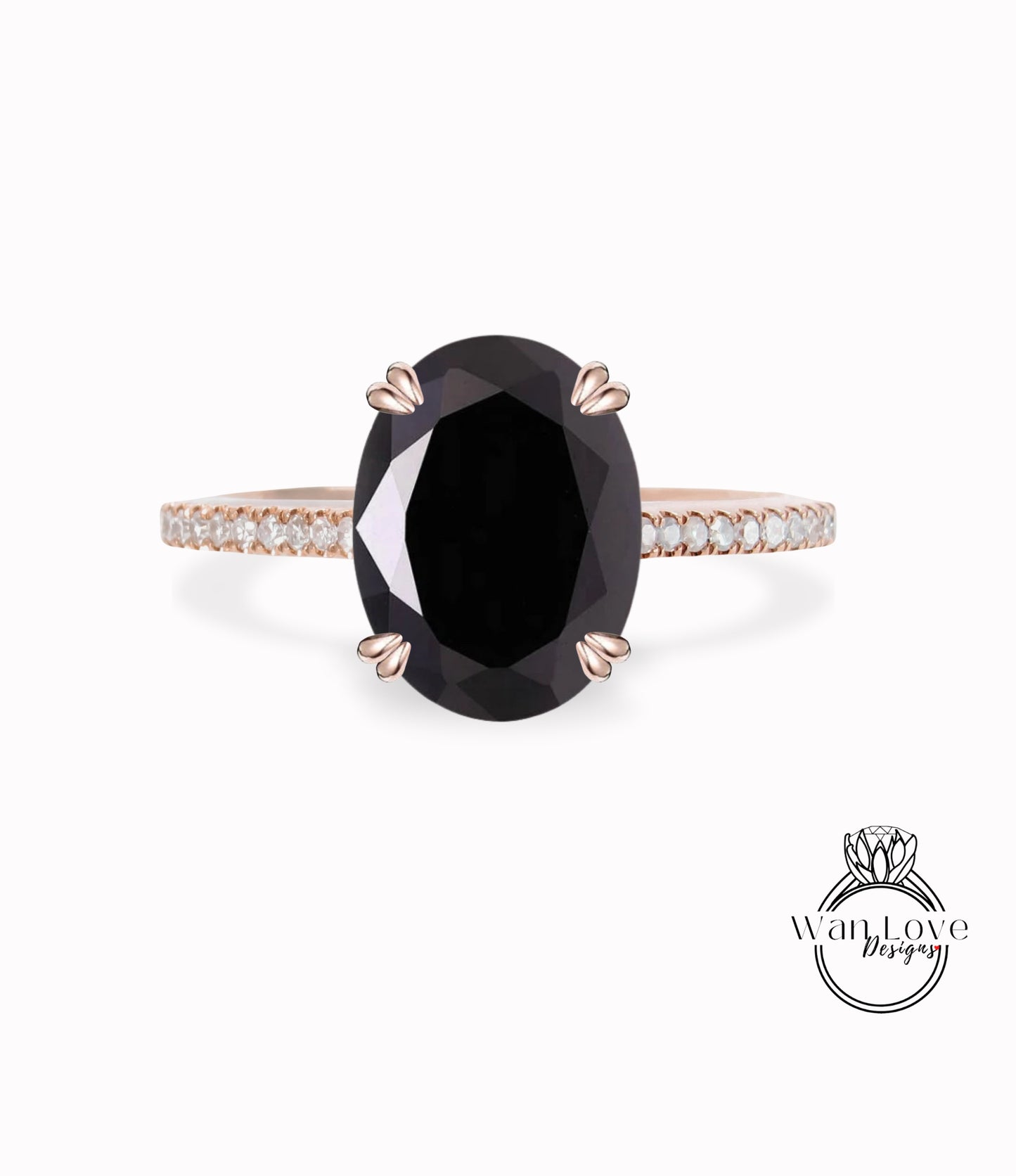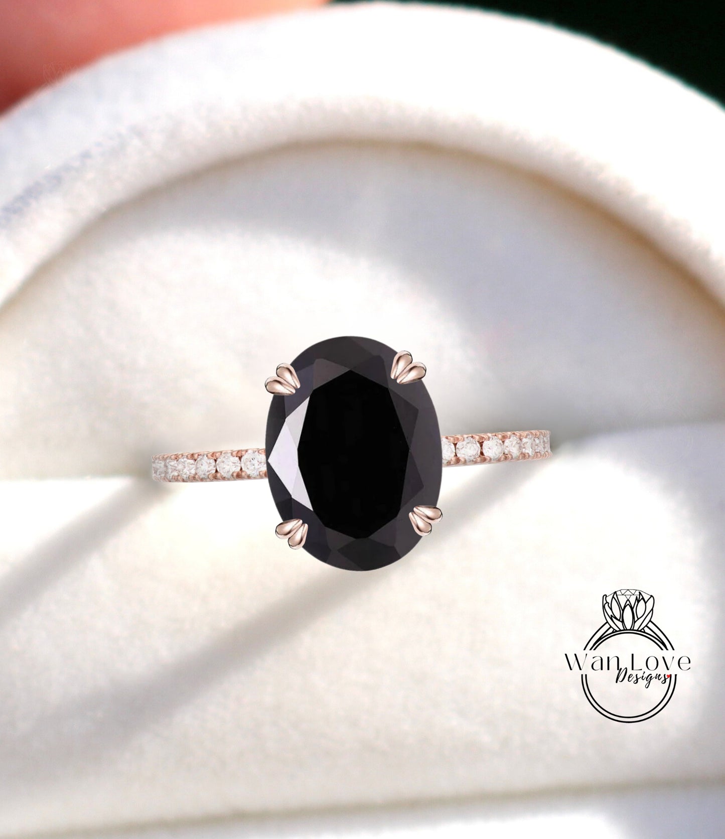 Anello di fidanzamento vintage con anello di fidanzamento in spinello nero a taglio ovale per donna, regalo per l'anniversario nuziale con diamante/moissanite mezza eternità