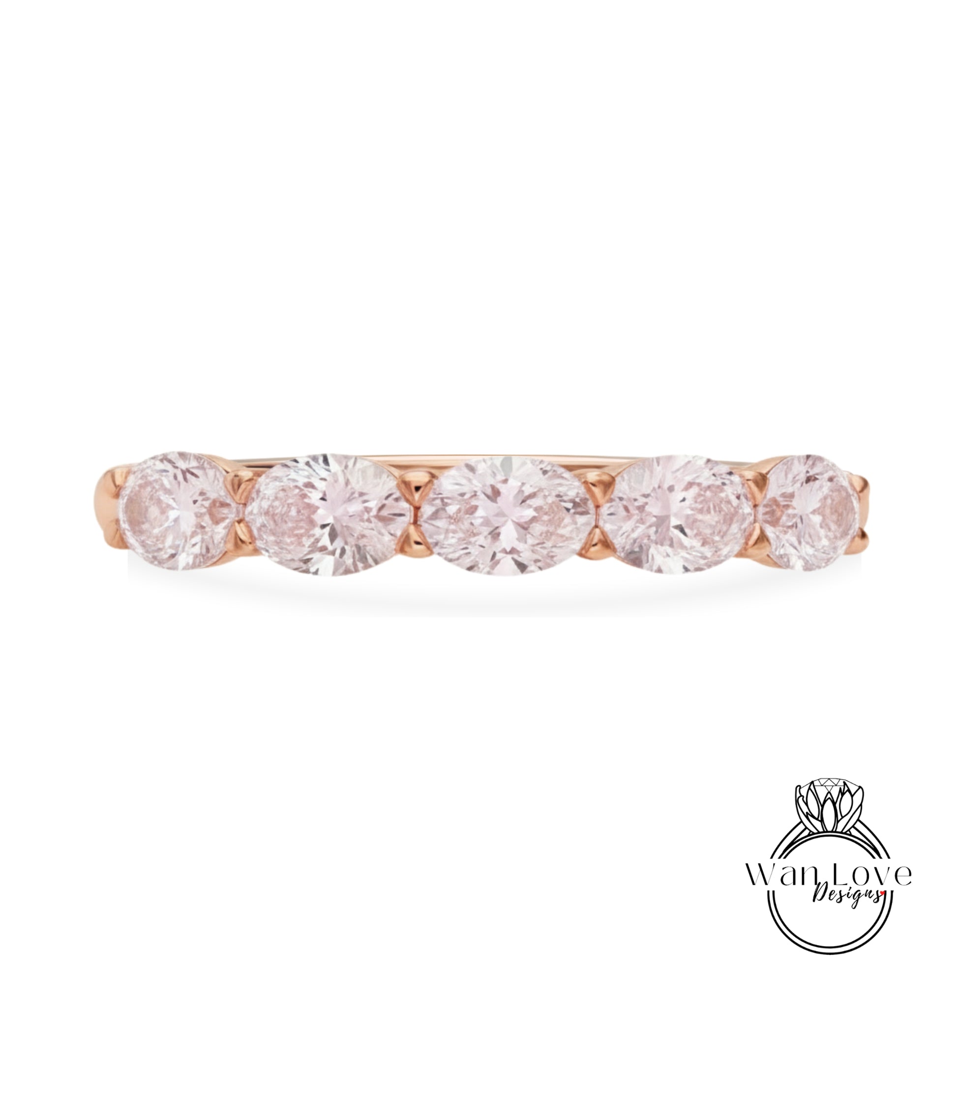 East West Fede nuziale Moissanite Anello Vintage Oro rosa Taglio ovale Fede nuziale unica da donna Fascia abbinata impilabile Set da sposa regalo di promessa