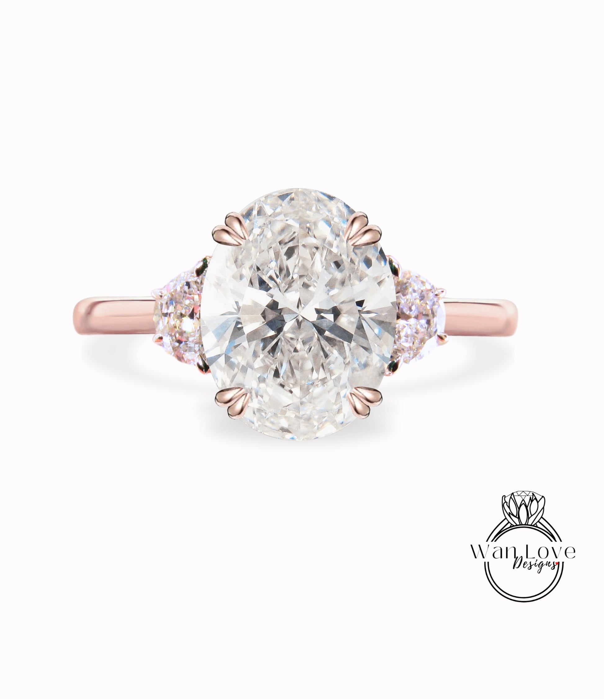 Anello di fidanzamento con diamante ovale mezza luna 3 pietre preziose 14k 18k bianco giallo oro rosa, platino, anello con diamante creato da laboratorio IGI autentico personalizzato