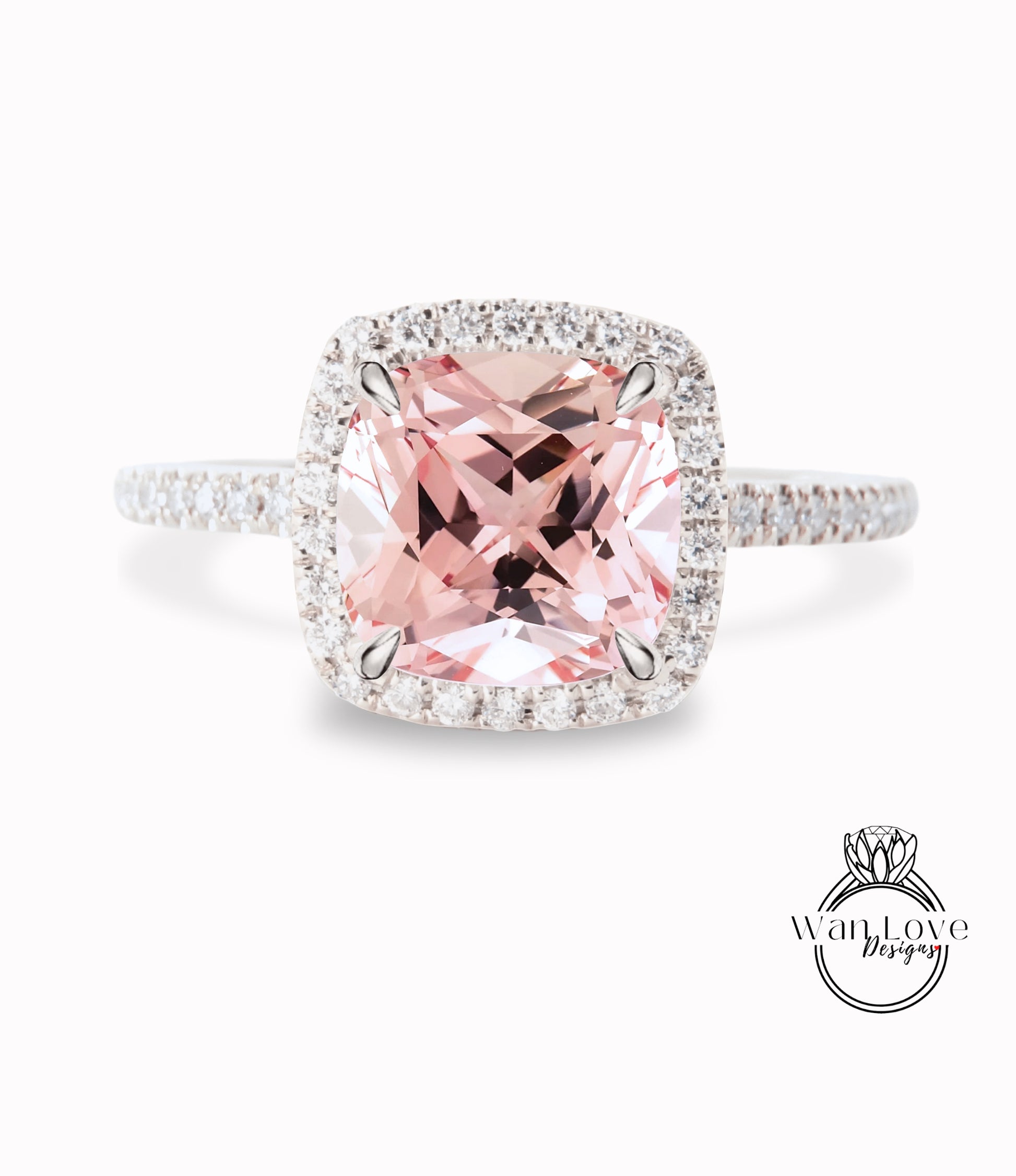 Anello di fidanzamento con zaffiro pesca con taglio a cuscino, anello vintage Art Déco in oro rosa con diamanti, pietra portafortuna, anello di promessa per l'anniversario di matrimonio