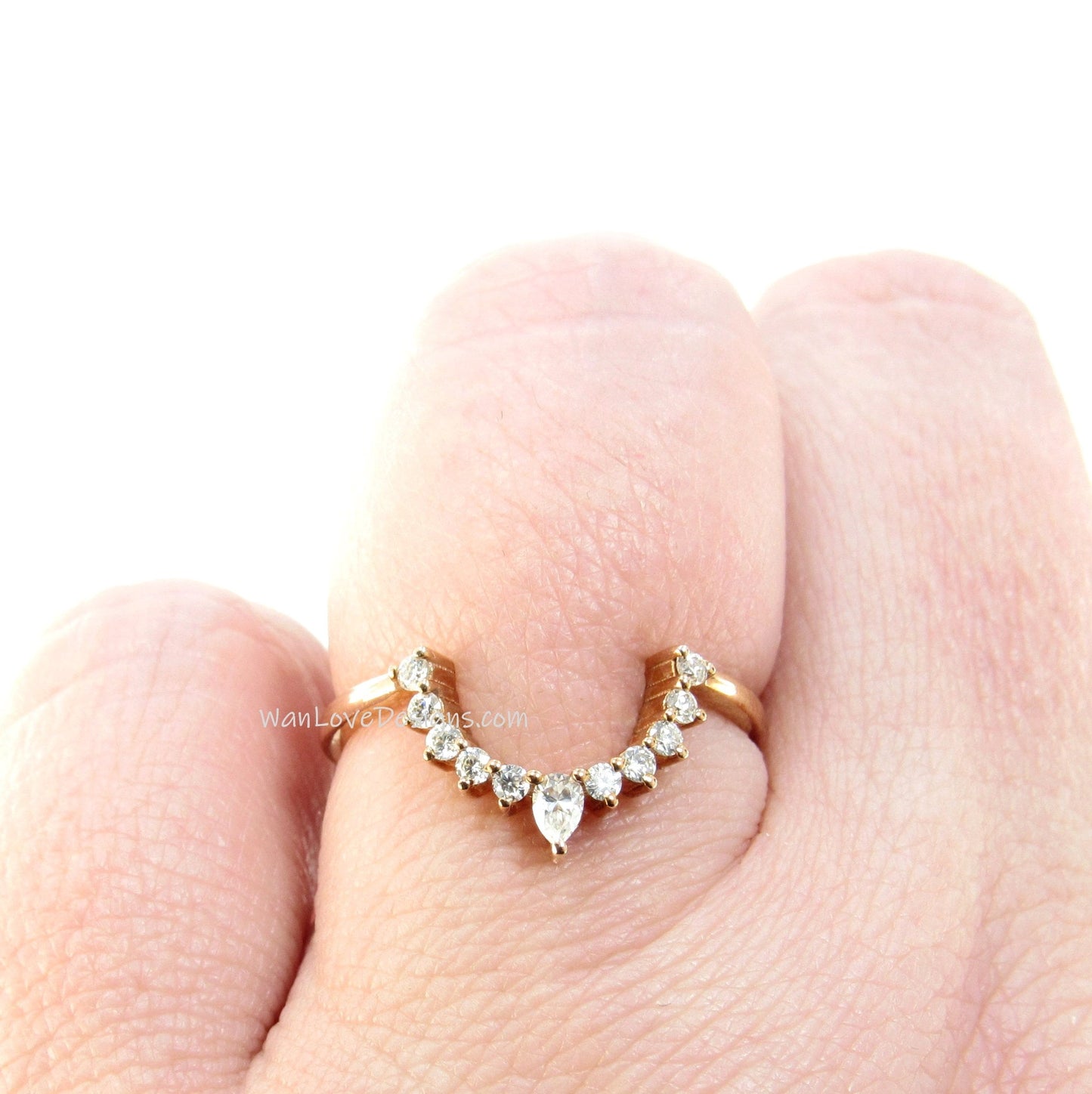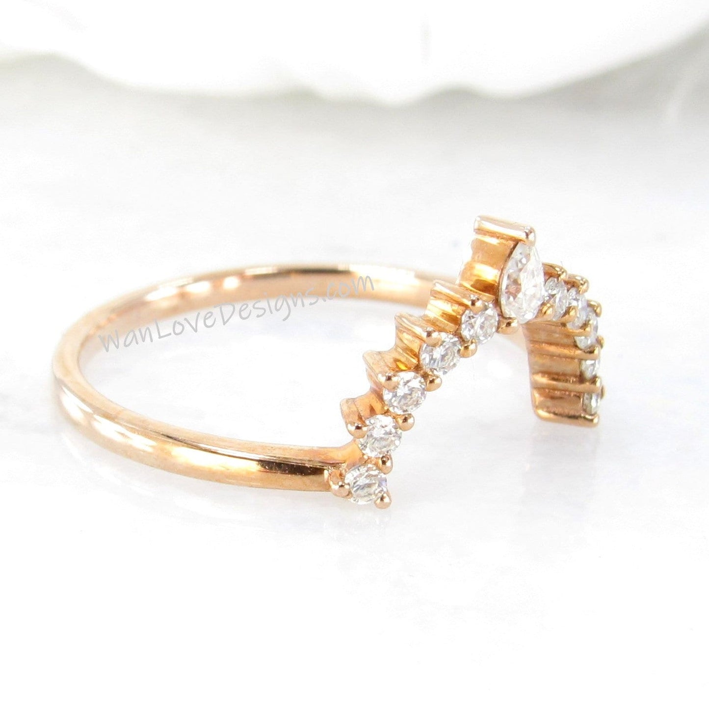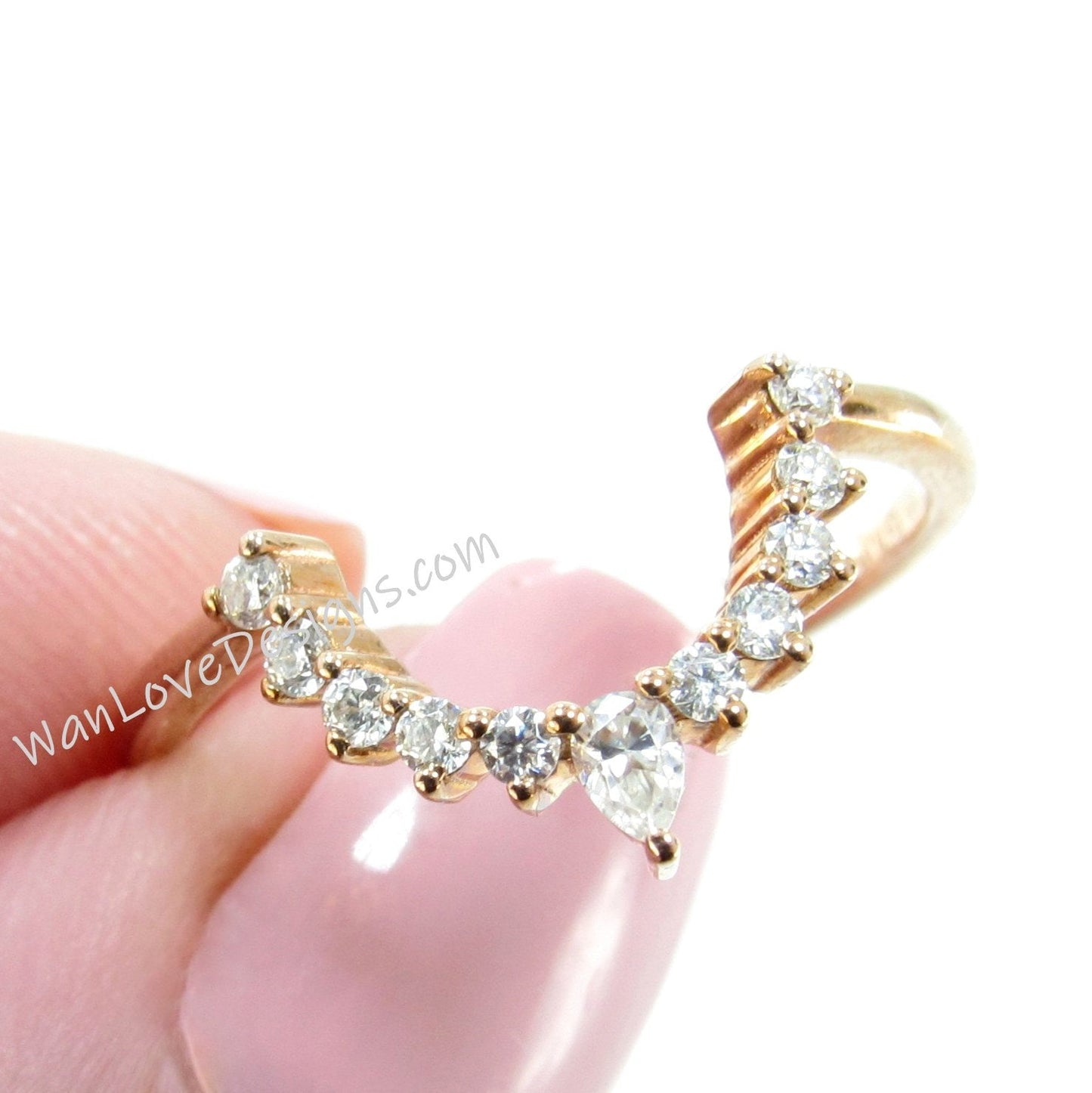 Anello nuziale diadema rotondo pera, fede nuziale pera Moissanite, anello nuziale in oro rosa 18 carati, anello coordinato curvo a U, anello anniversario in oro rosa