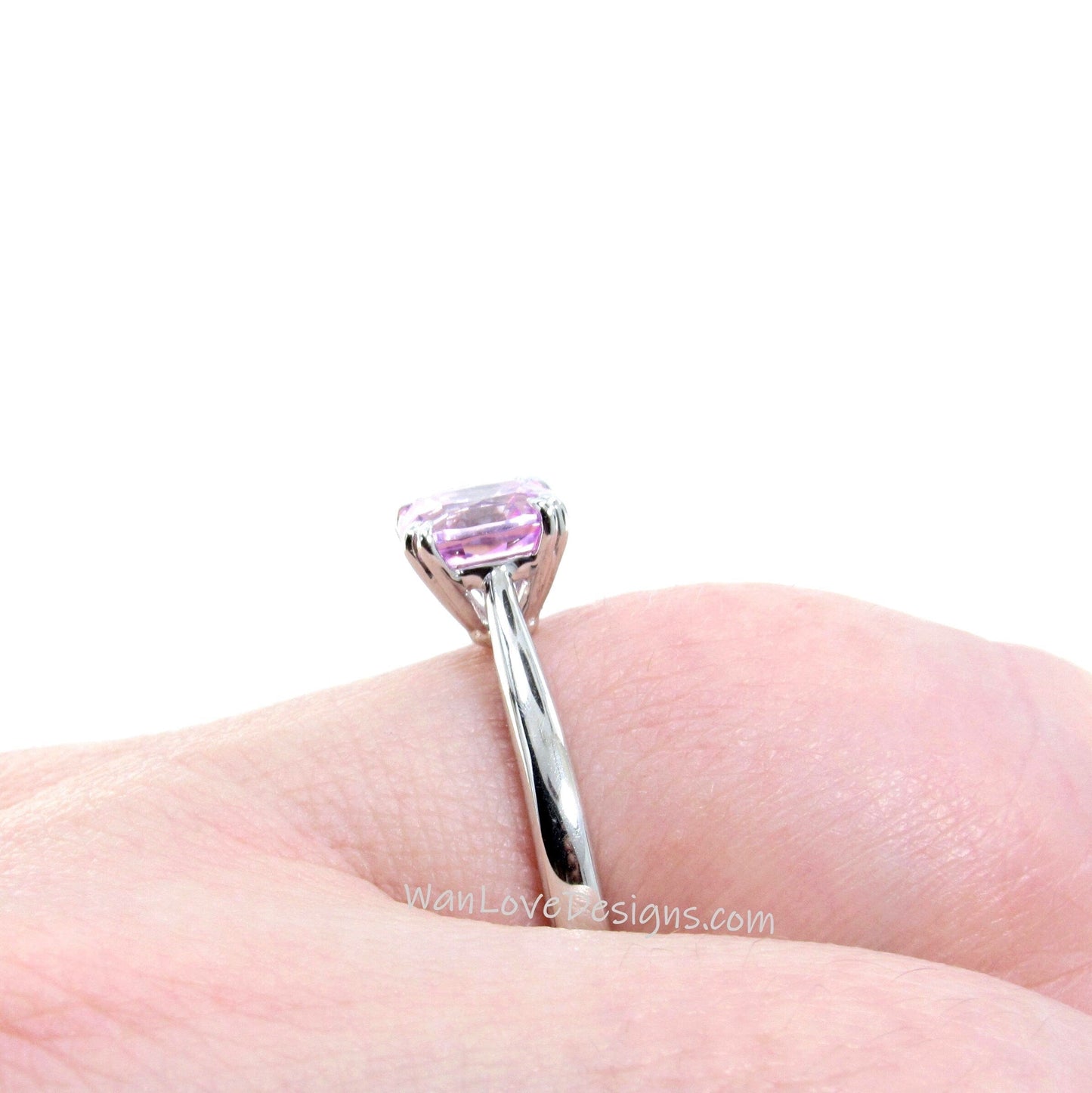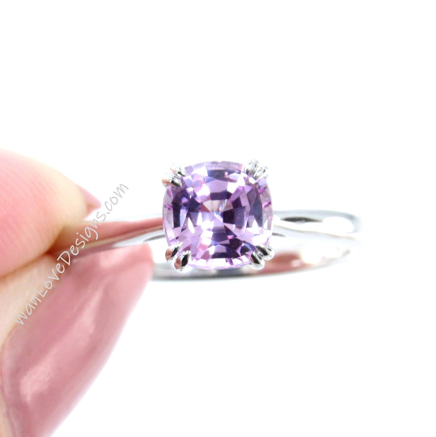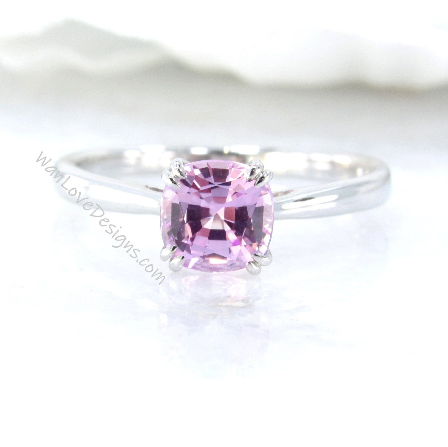 Anello di fidanzamento con zaffiro rosa cuscino in oro giallo rosa bianco 14k, anello nuziale personalizzato con taglio a cuscino, anello di promessa con pietra preziosa di WanLoveDesigns.