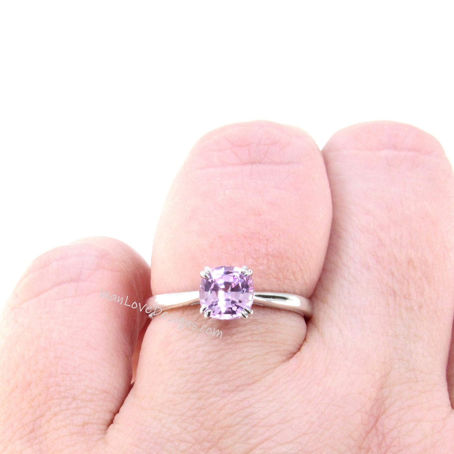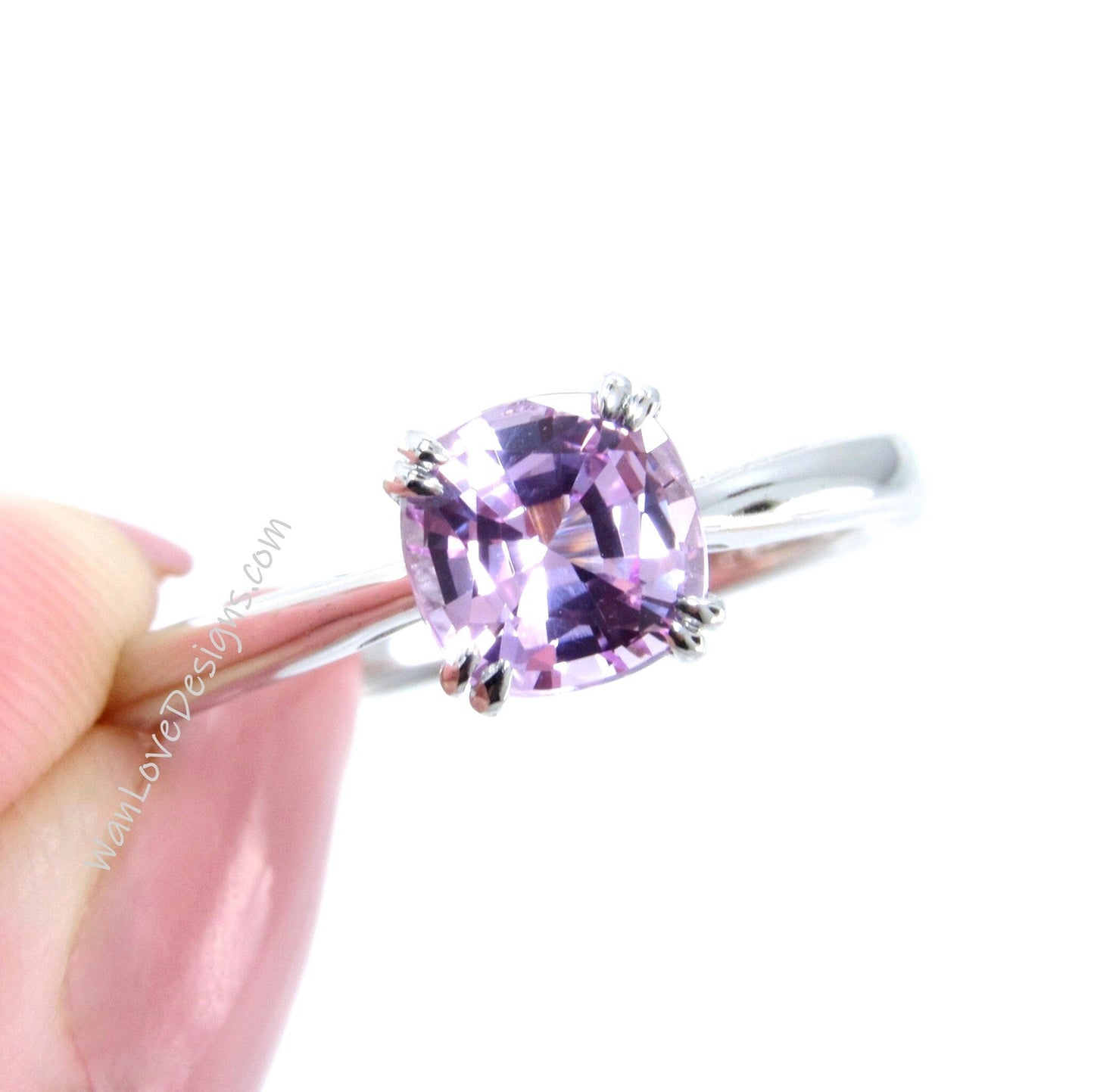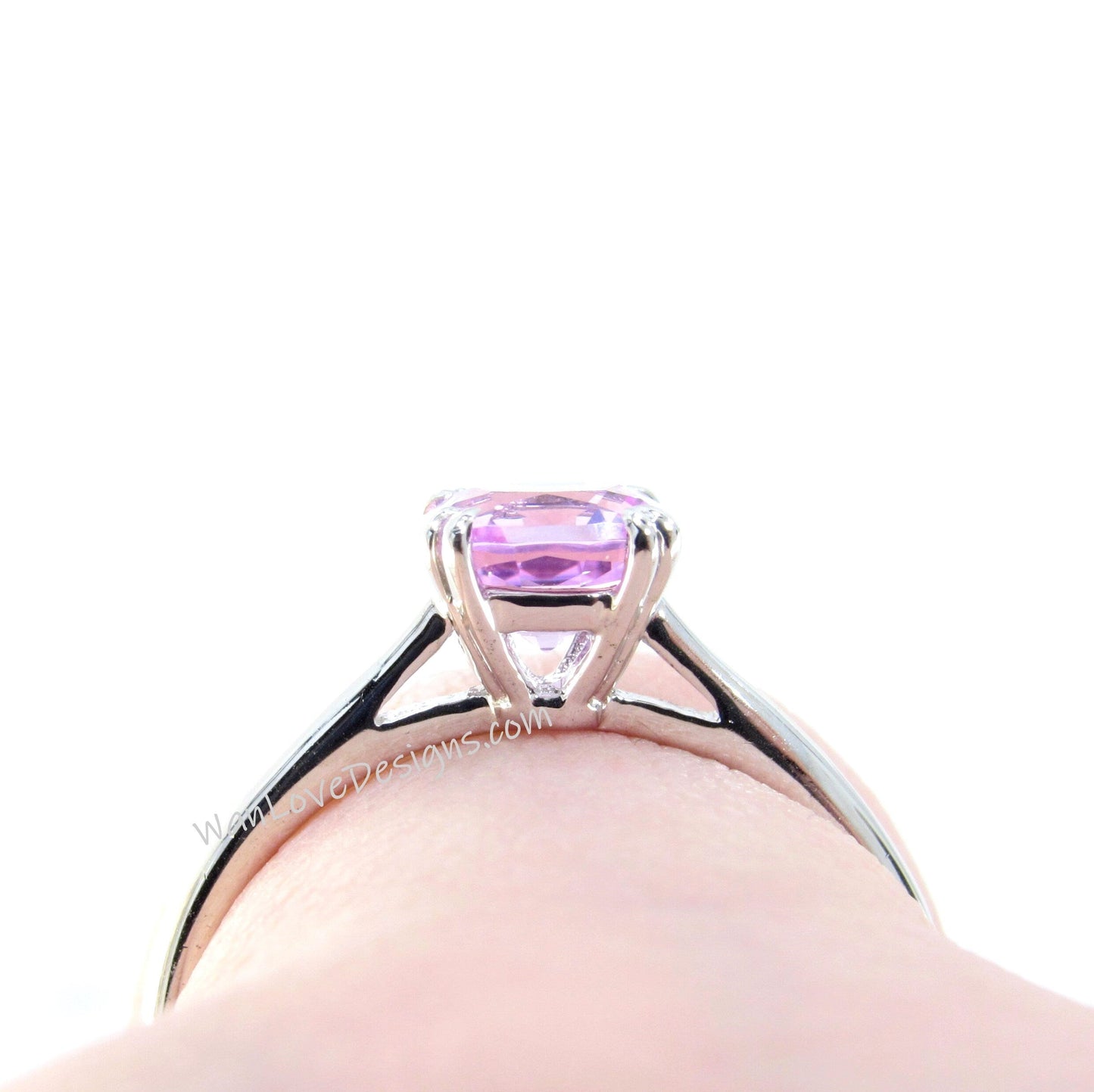 Anello di fidanzamento con zaffiro rosa cuscino in oro giallo rosa bianco 14k, anello nuziale personalizzato con taglio a cuscino, anello di promessa con pietra preziosa di WanLoveDesigns.