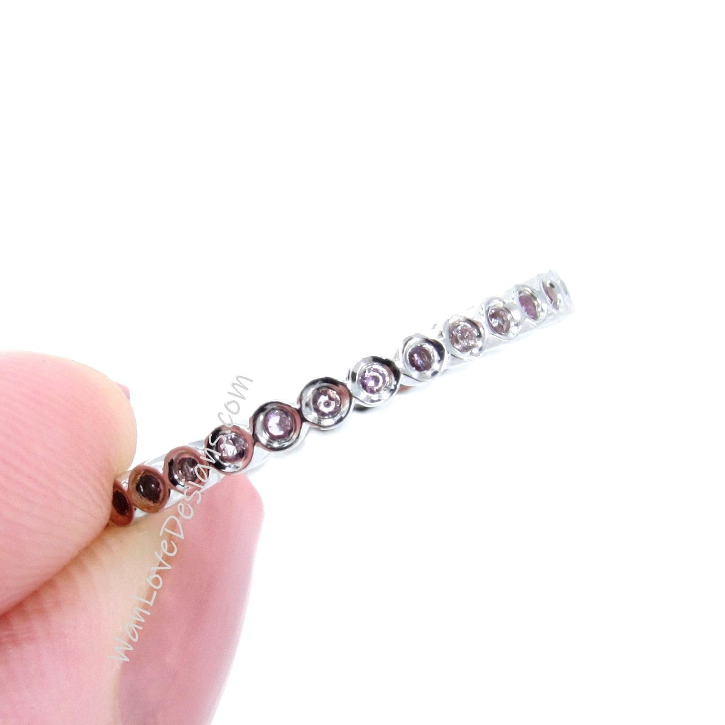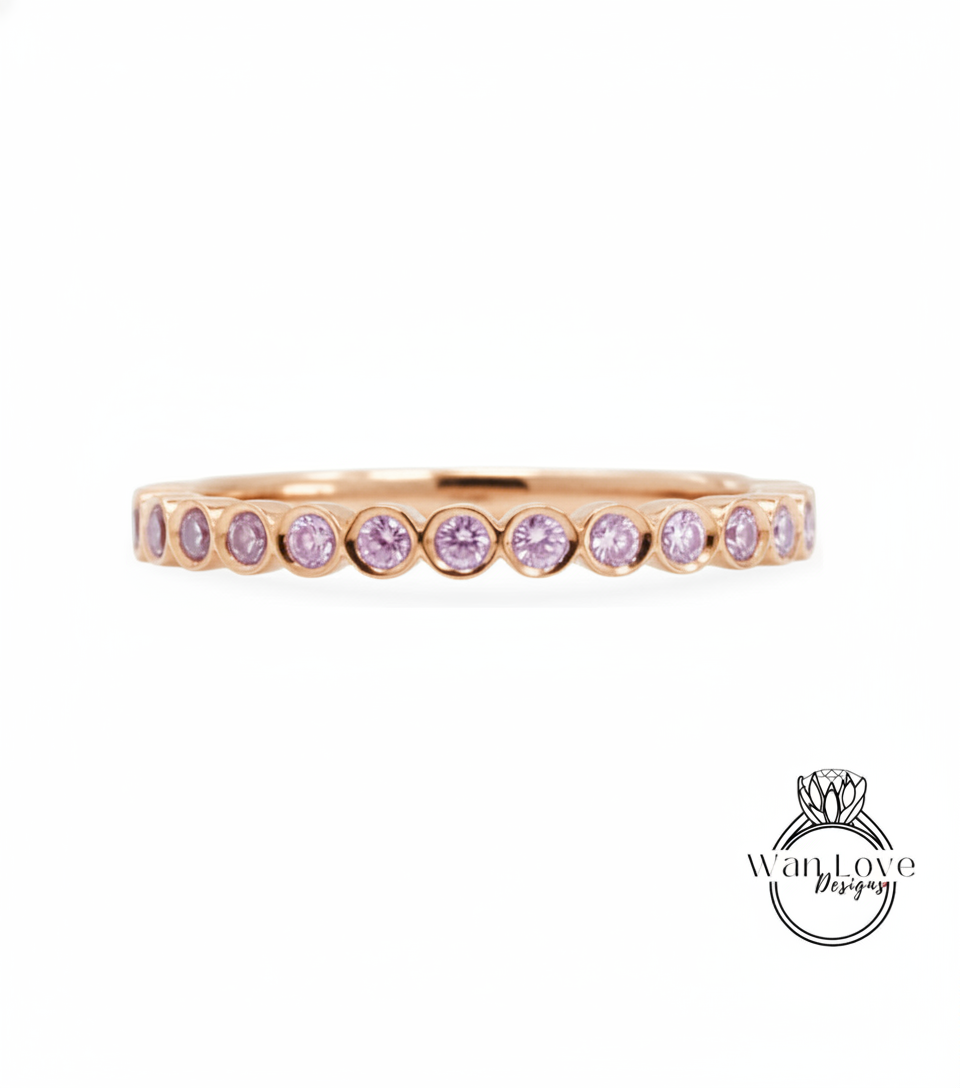 Fascia con castone in zaffiro rosa, Anello con pietra portafortuna, Anello con zaffiro rosa in oro rosa, Fede nuziale con pietra portafortuna, Anello con castone a bolle delicato, Anello impilabile