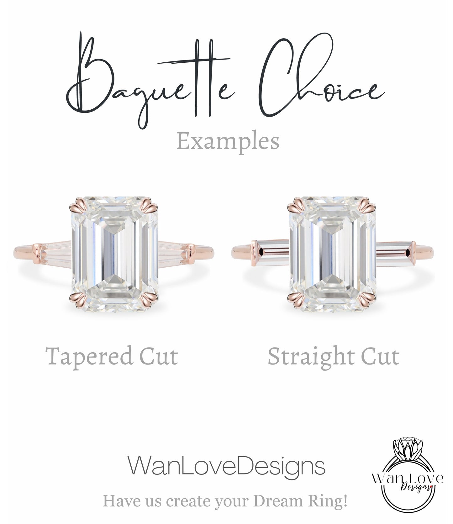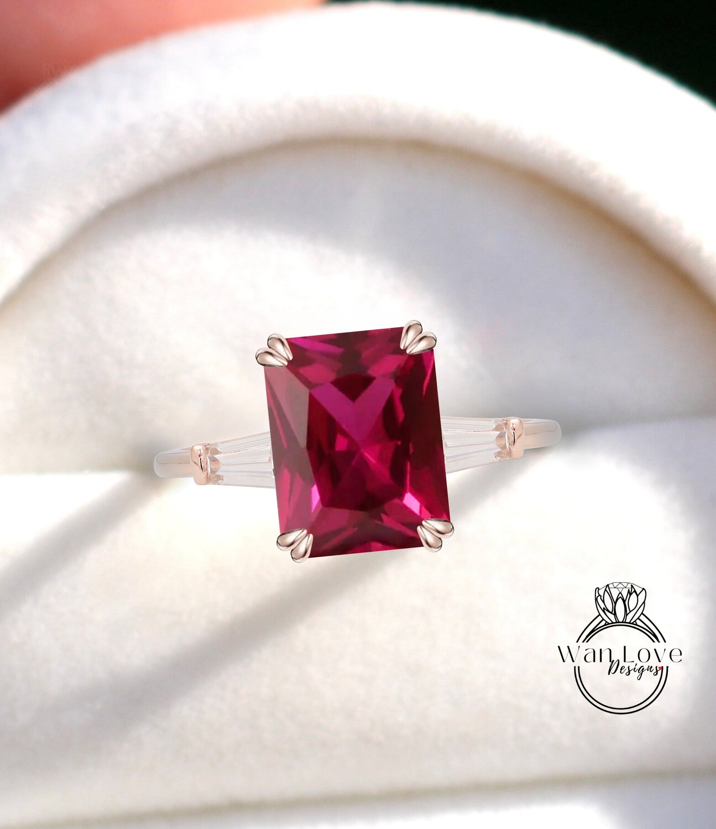 Anello di fidanzamento con 3 pietre di rubino e Moissanite, baguette con smeraldo personalizzato, oro giallo rosa bianco 18k 14k, platino, WanLoveDesigns