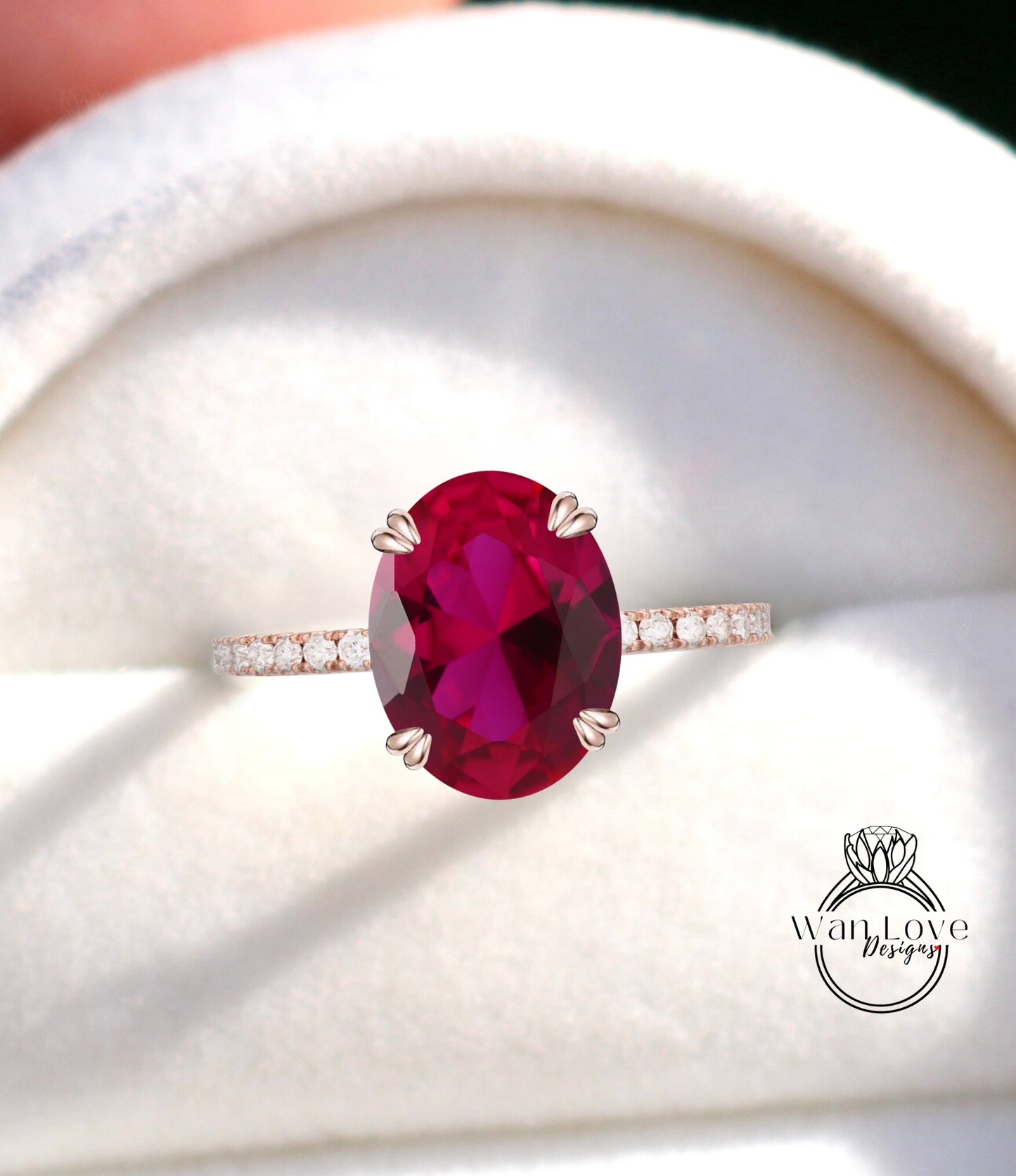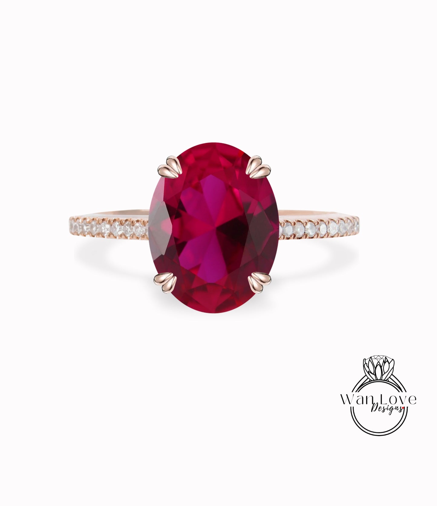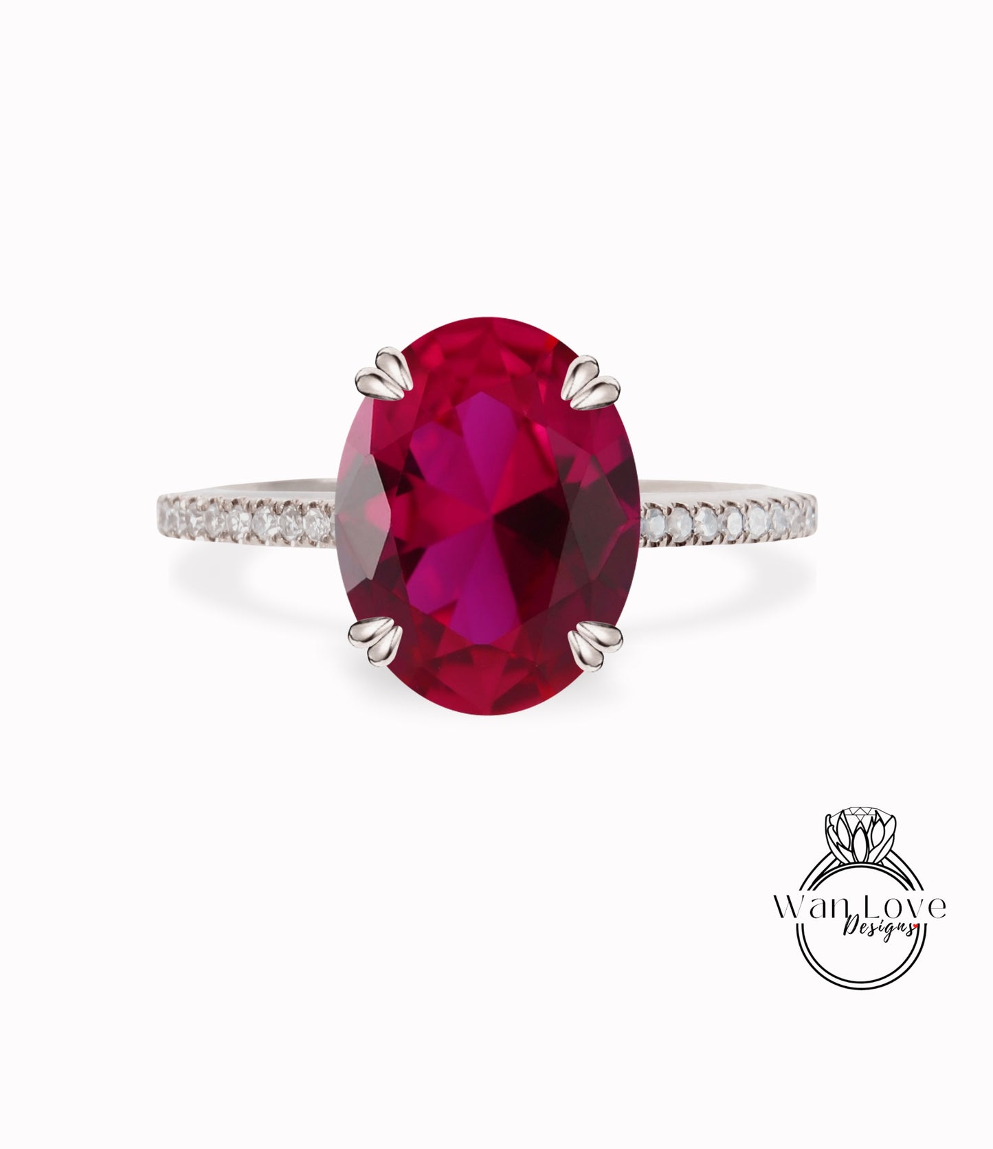 Anello di fidanzamento ovale con diamante rubino, cattedrale o cesto, 14kt 18kt oro-platino-matrimonio personalizzato, WanLoveDesigns