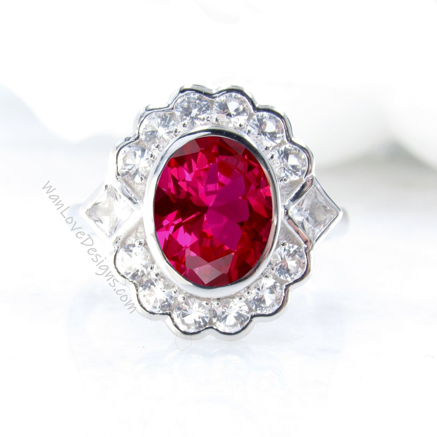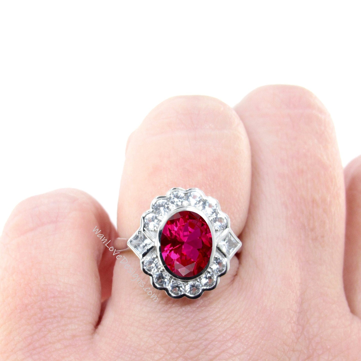 Anello di fidanzamento con rubino e moissanite ovale con semi castoni a grappolo principessa rotondo Halo Gioielli da sposa personalizzati