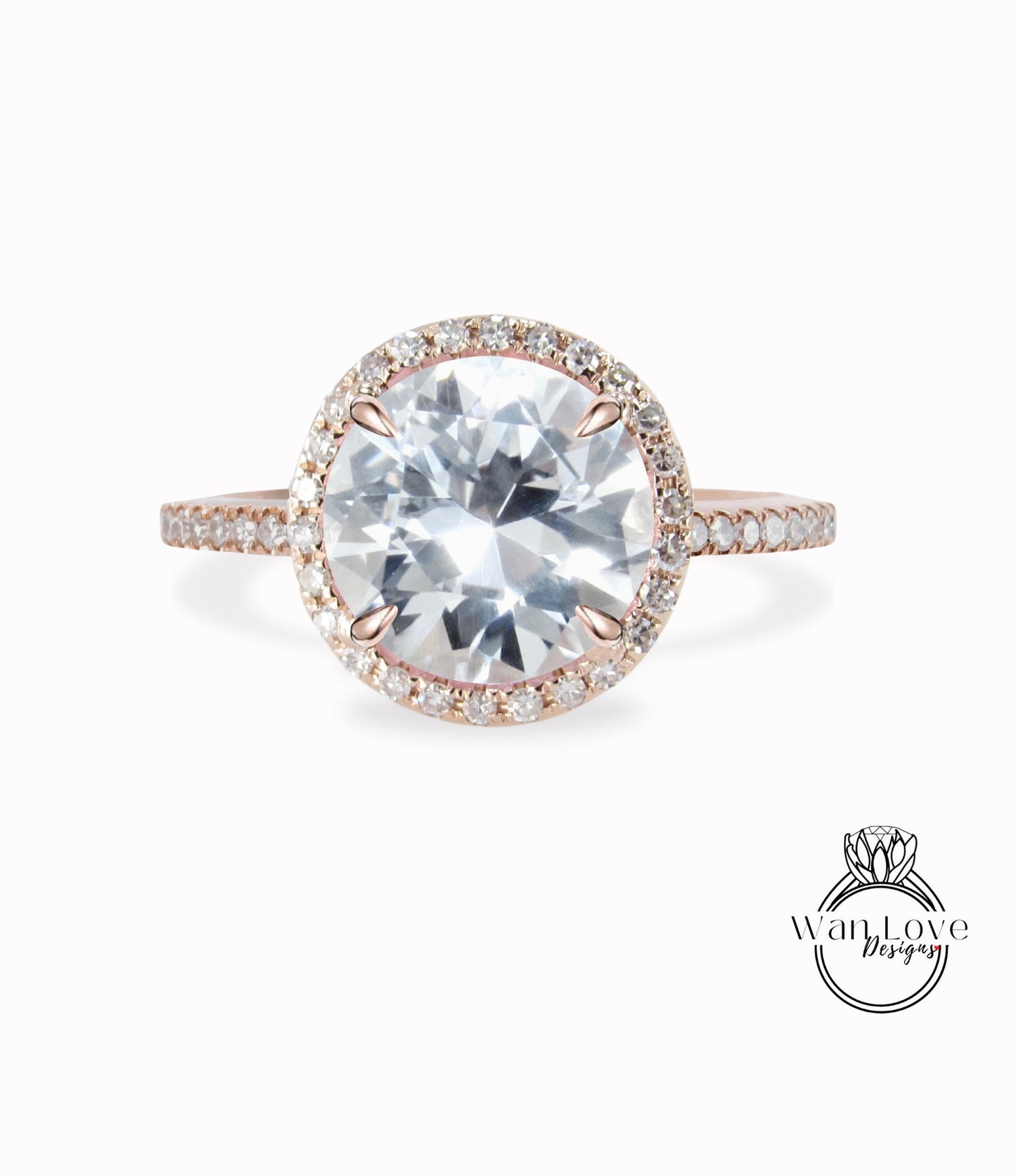 Anello di fidanzamento vintage con zaffiro bianco, anello aureola rotondo in oro rosa, anello con diamanti art deco, anello nuziale, anello di promessa di anniversario