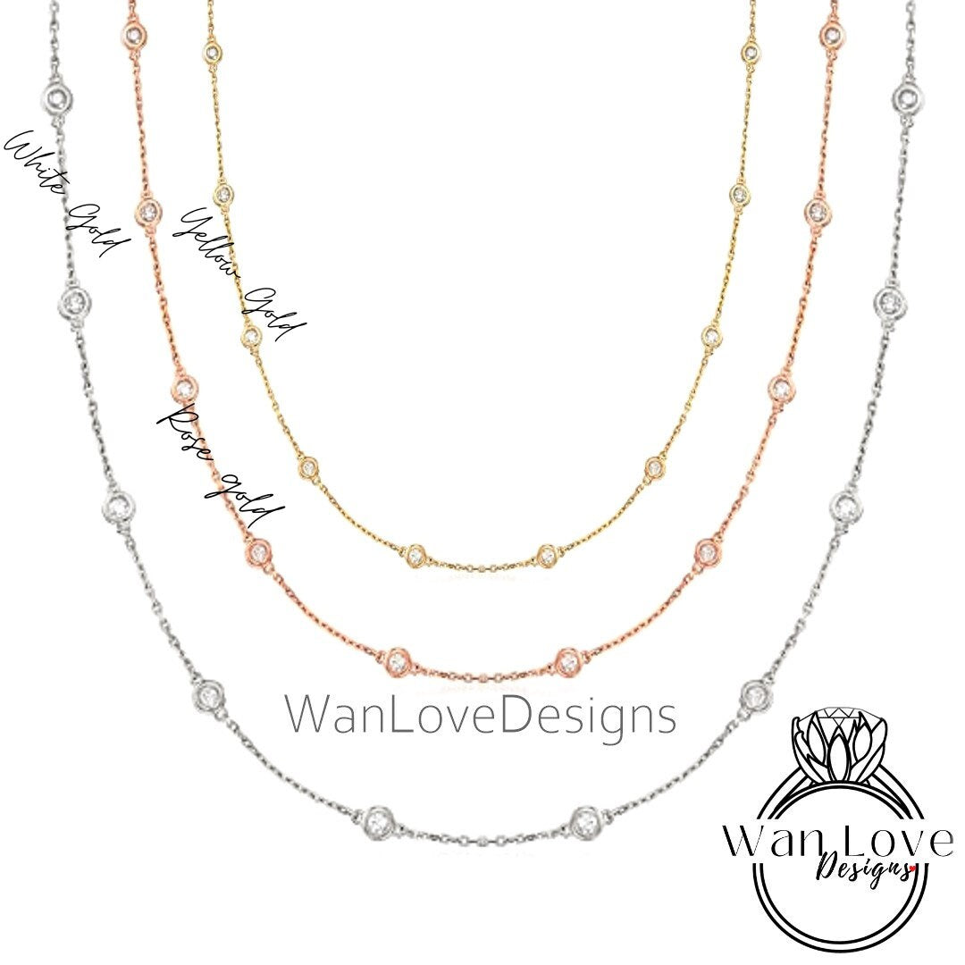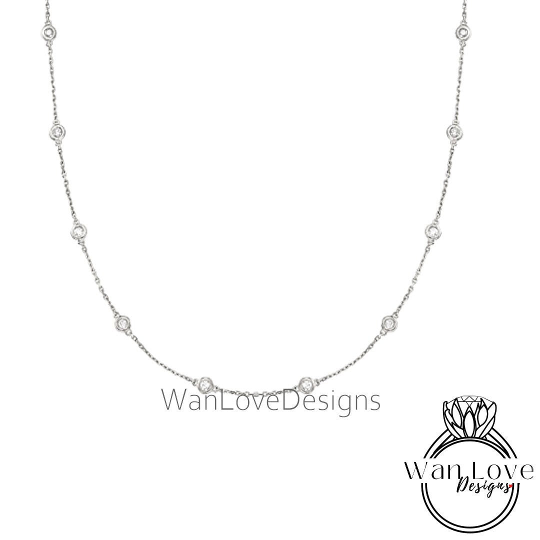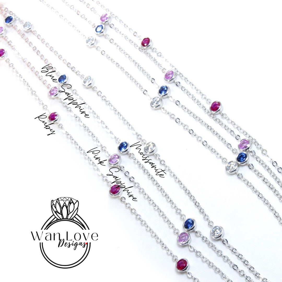 Ready 10 Station Moissanite Ruby Pink or Blue Sapphire Necklace / 1 Carat Diamond By the Yard Necklace / Birthstone Bezel Set Necklace /Gift