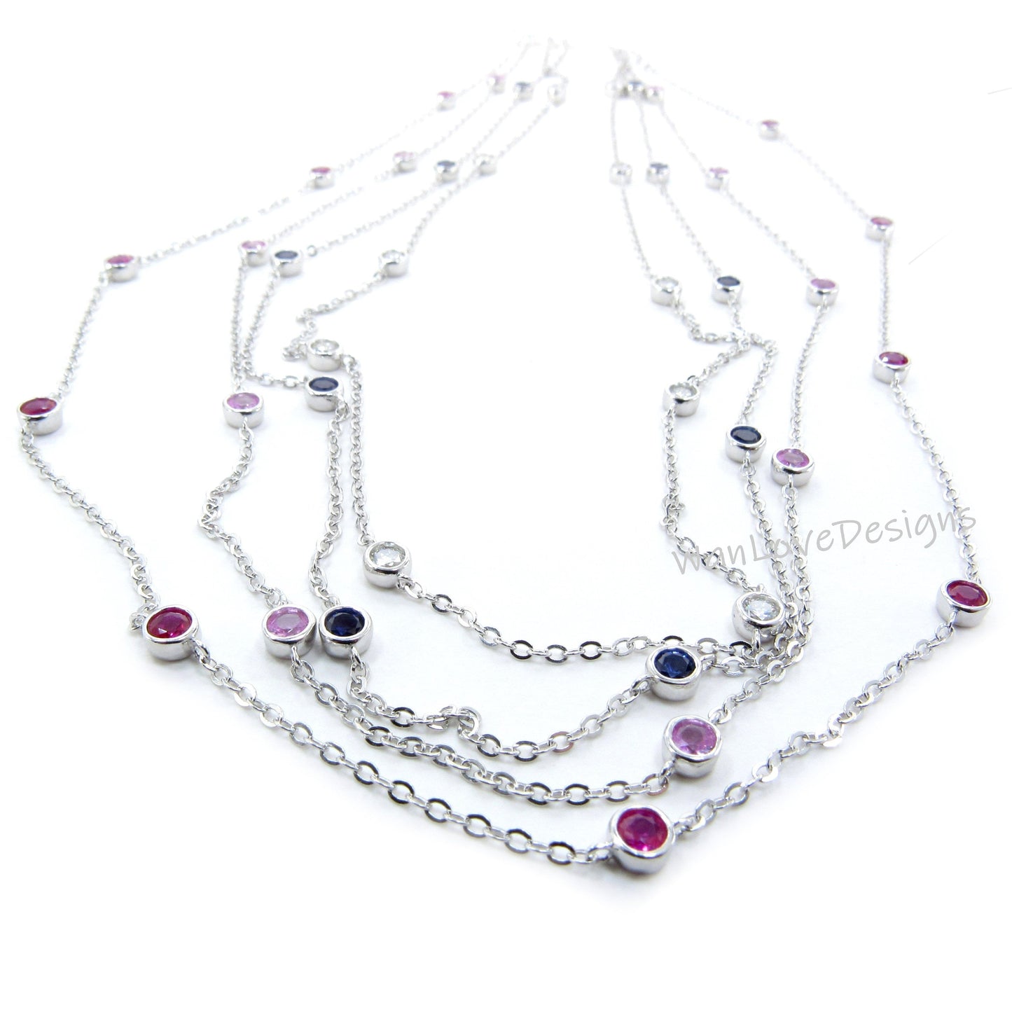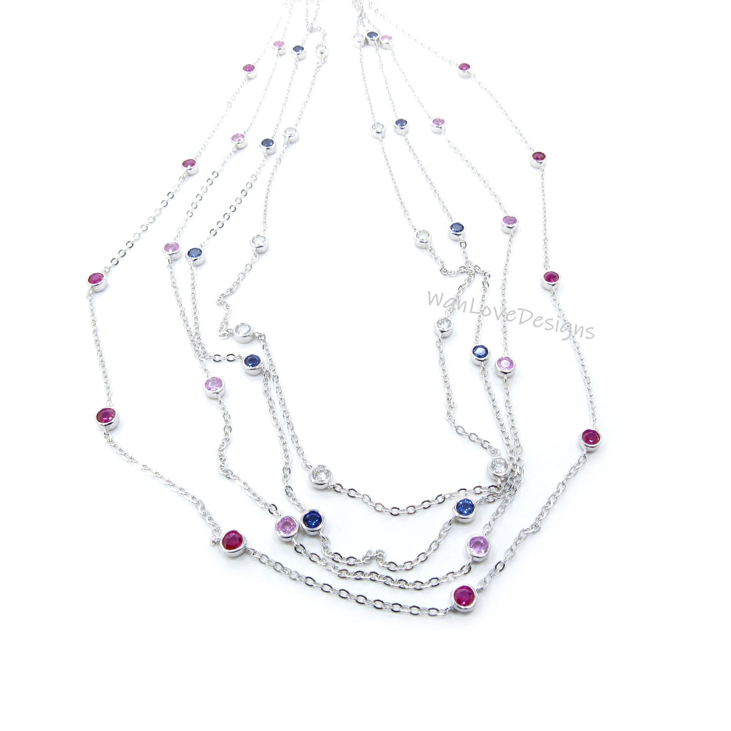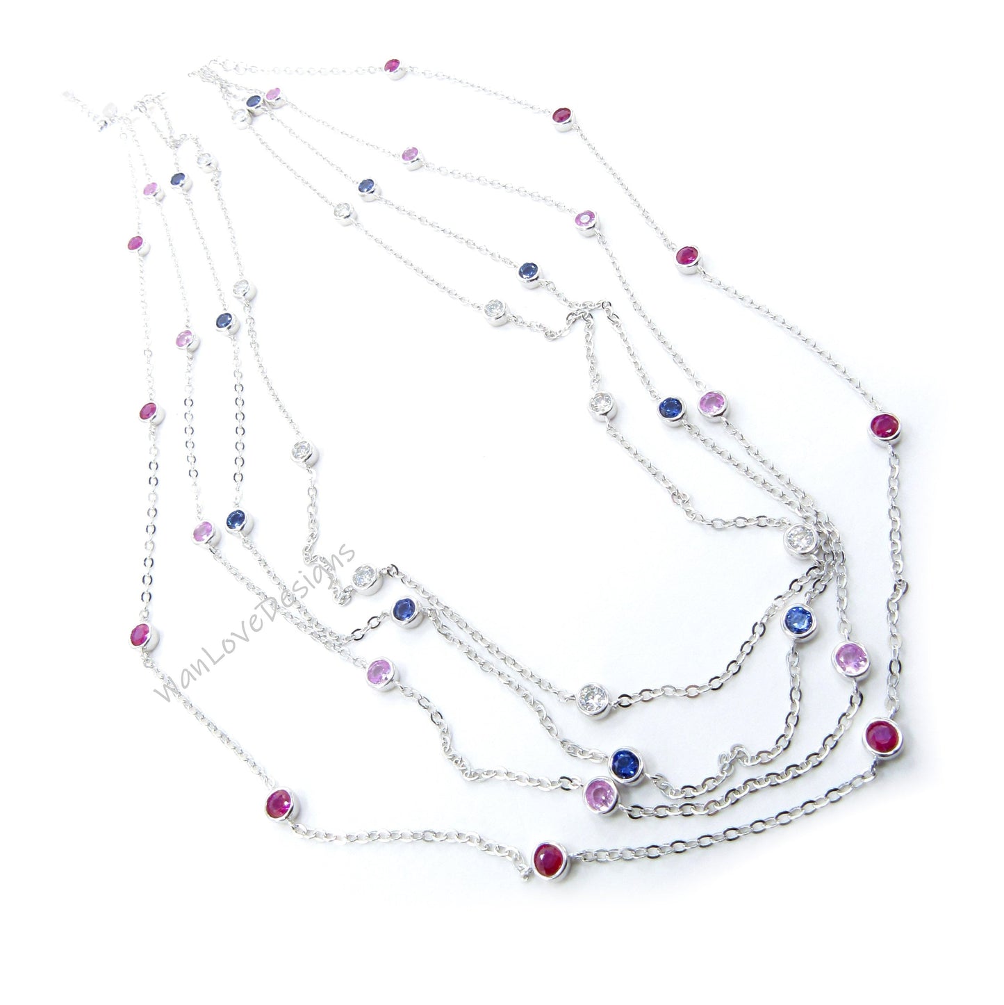Ready 10 Station Moissanite Ruby Pink or Blue Sapphire Necklace / 1 Carat Diamond By the Yard Necklace / Birthstone Bezel Set Necklace /Gift